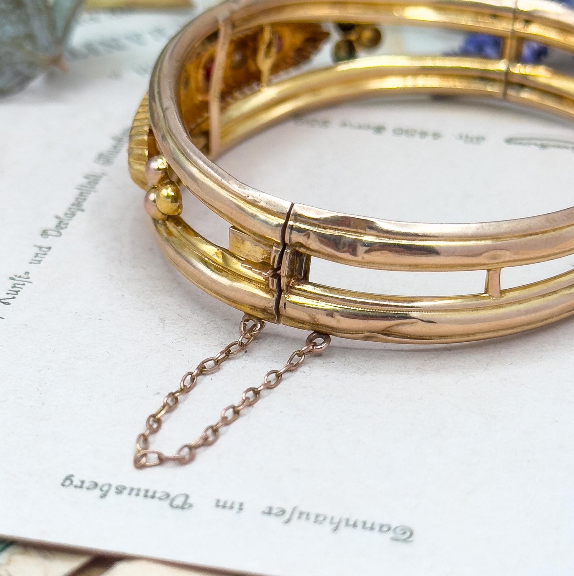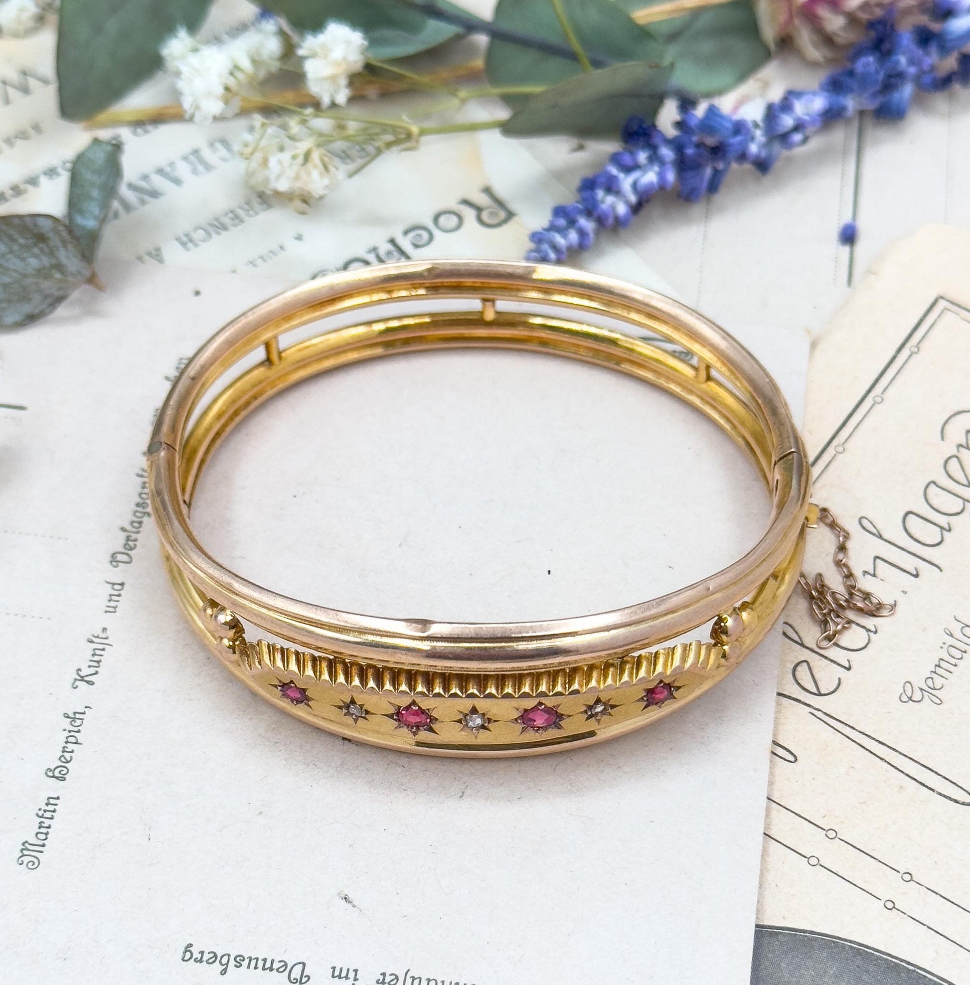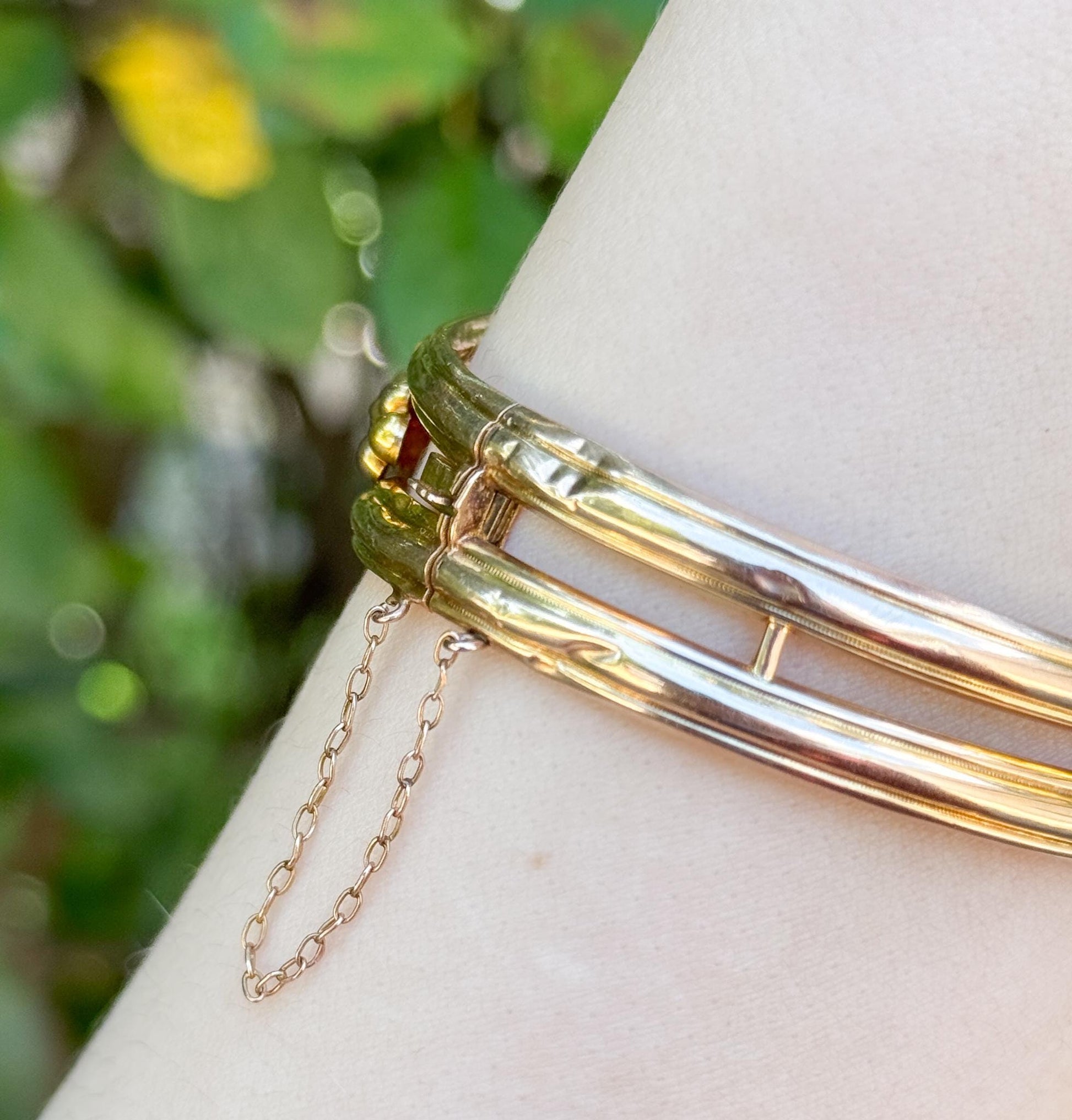 Antique 9ct Gold Garnet Bangle Bracelet: Victorian Rose Cut Diamond Jewelry