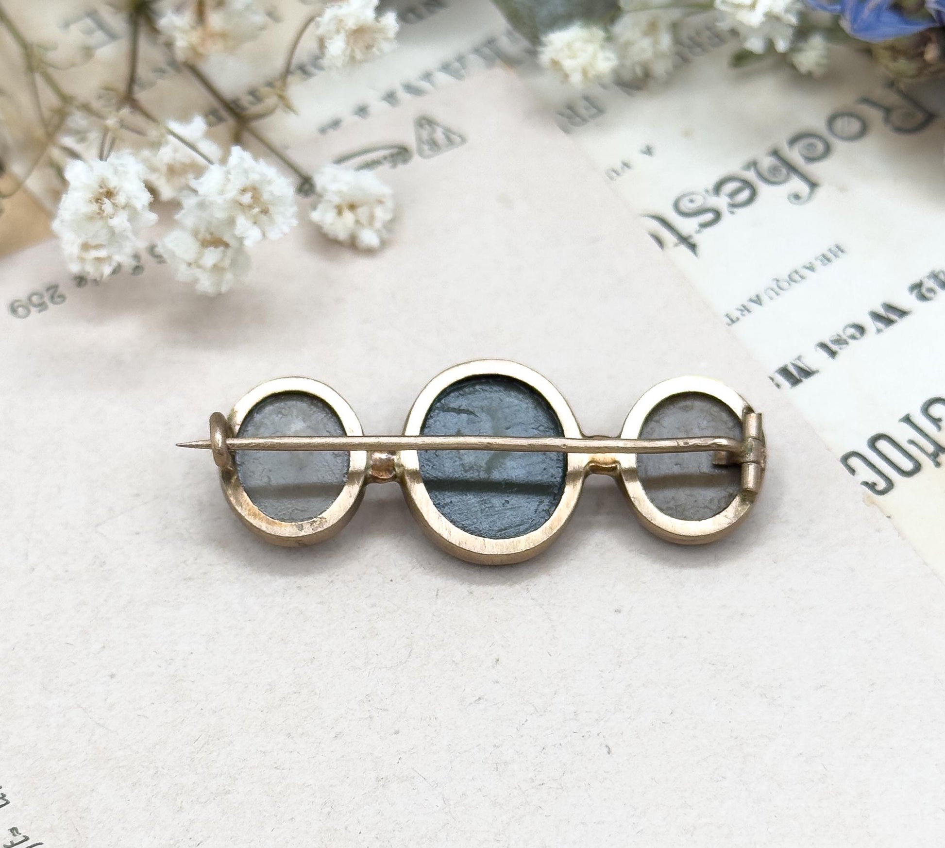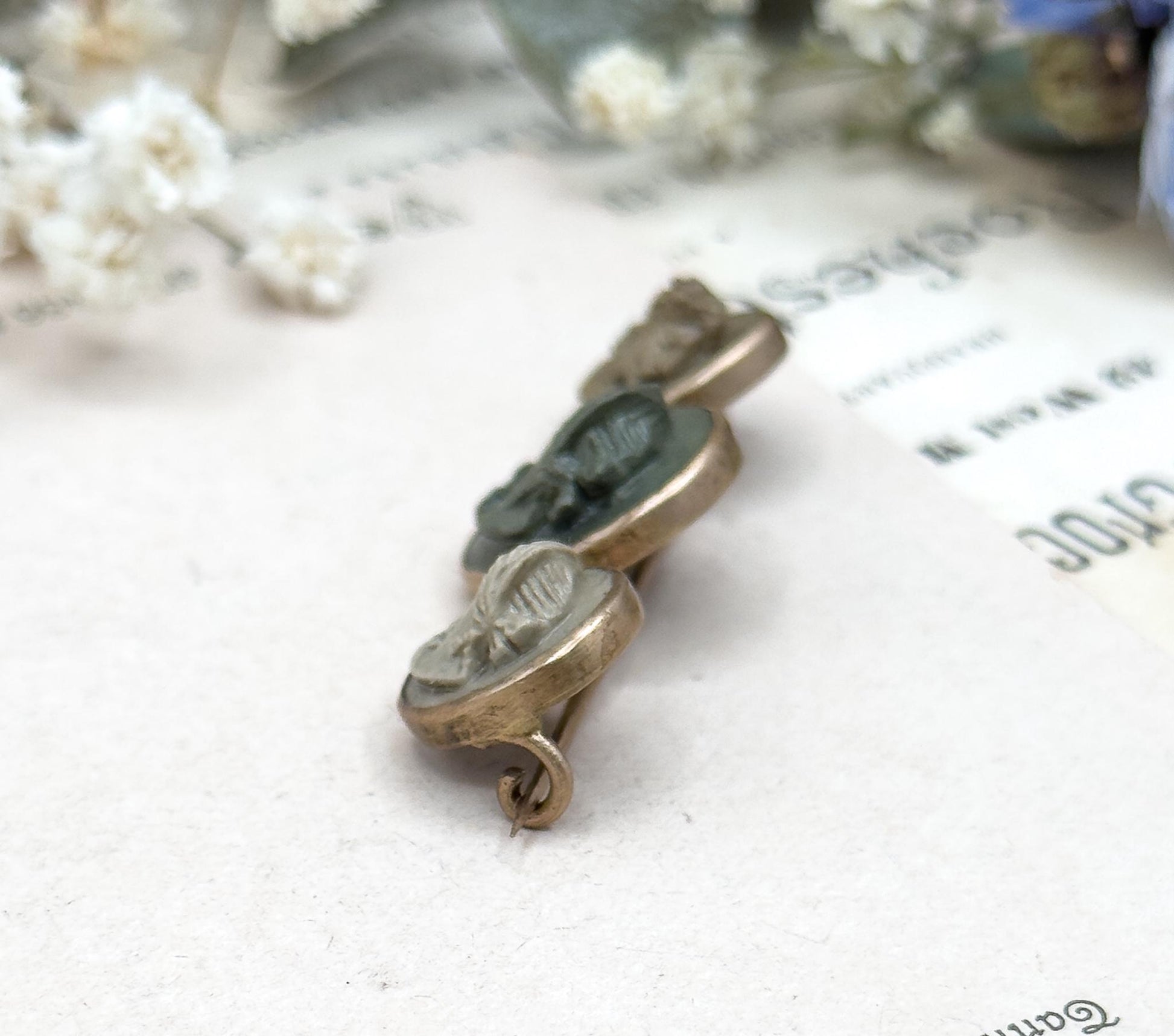 Antique Lava Cameo Brooch with Three Cameos Bezel Set Bar Brooch Grand Tour Souvenir