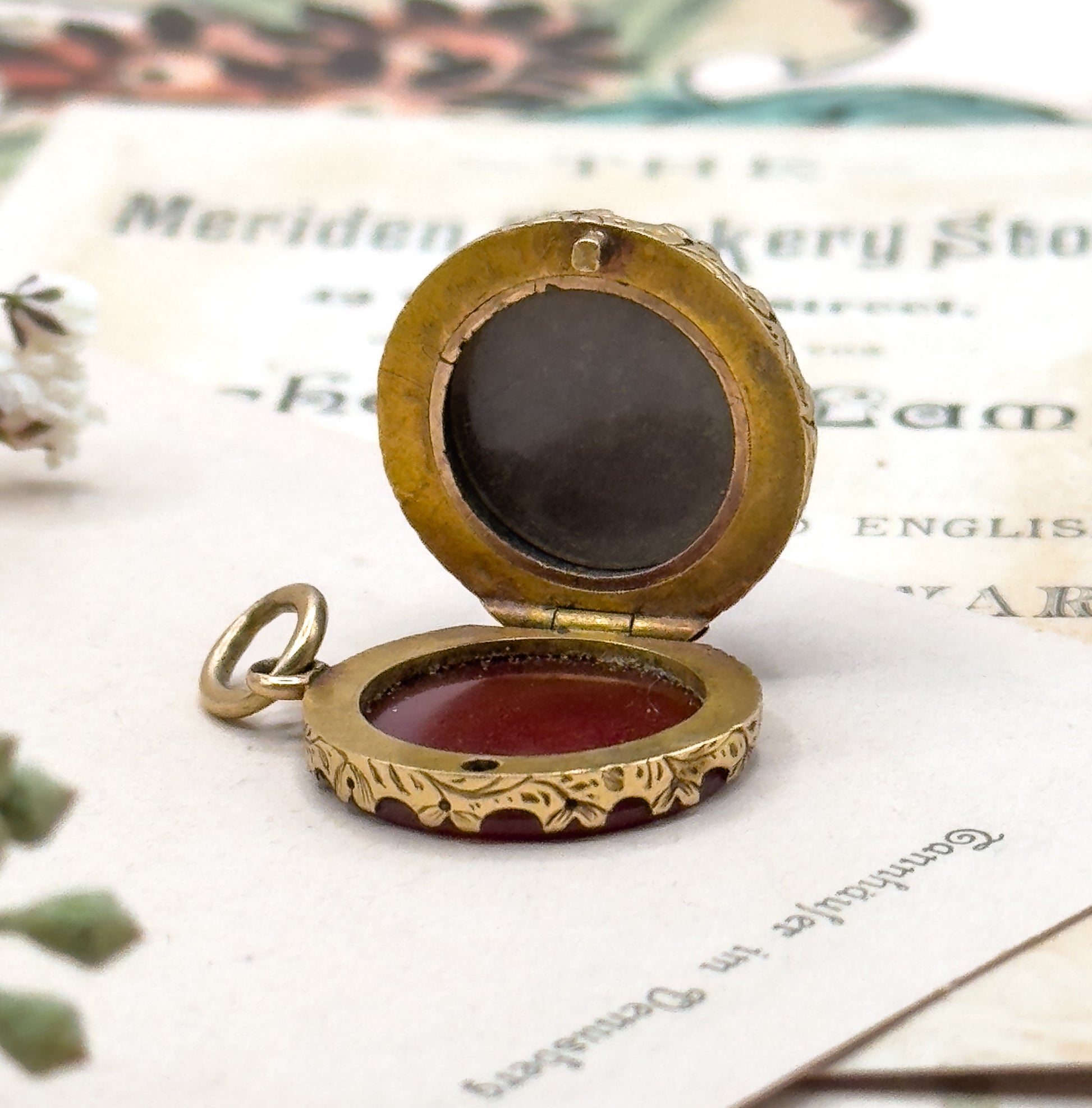 Antique Rudraksha and Carnelian Locket, Georgian Locket Victorian Locket 15K Prayer Seed Pendant Circa 1830s 1850s