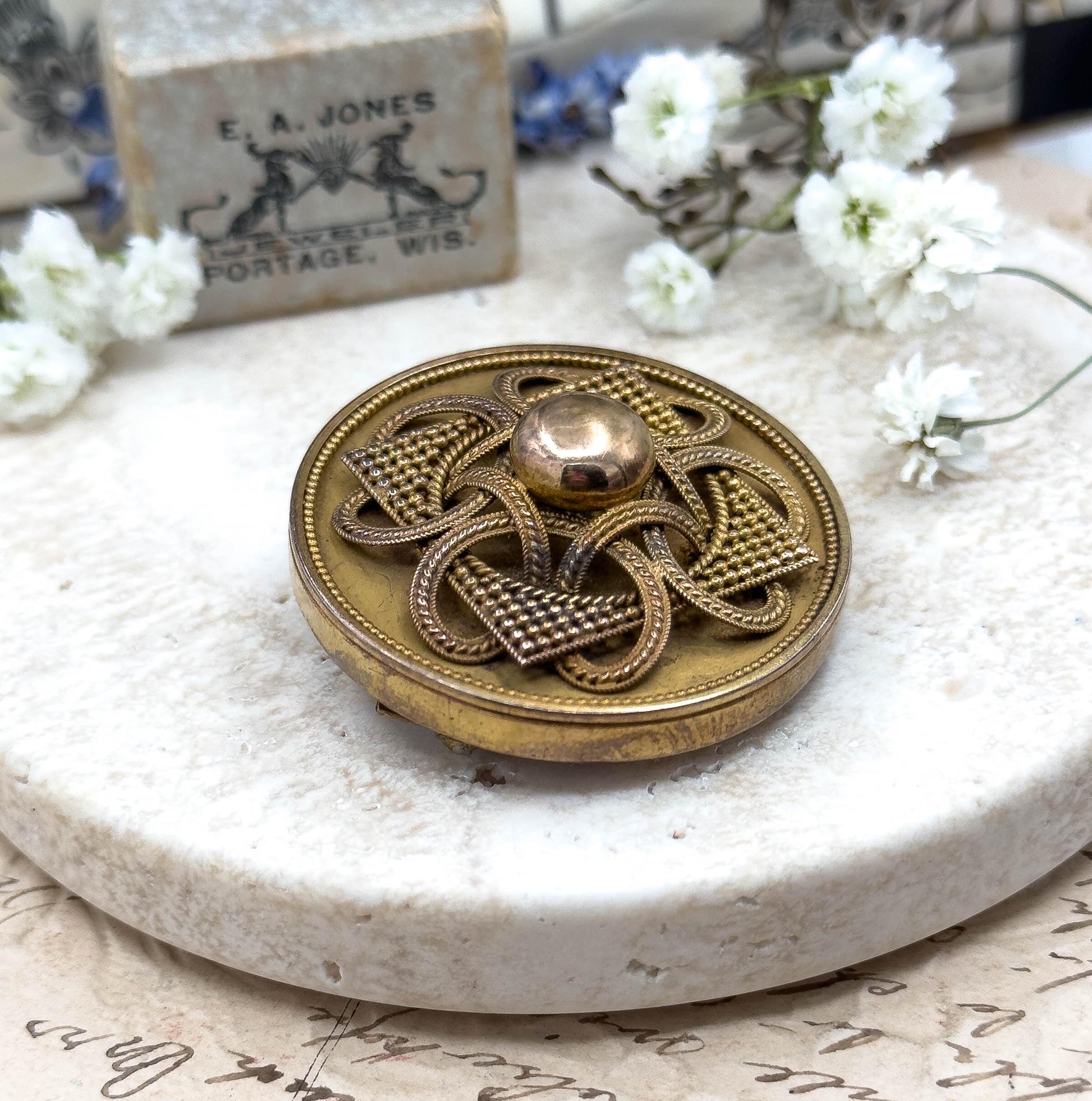 Antique Victorian Mourning Brooch in 14K Gold Etruscan Revival Woven Hair Locket Sentimental Jewelry