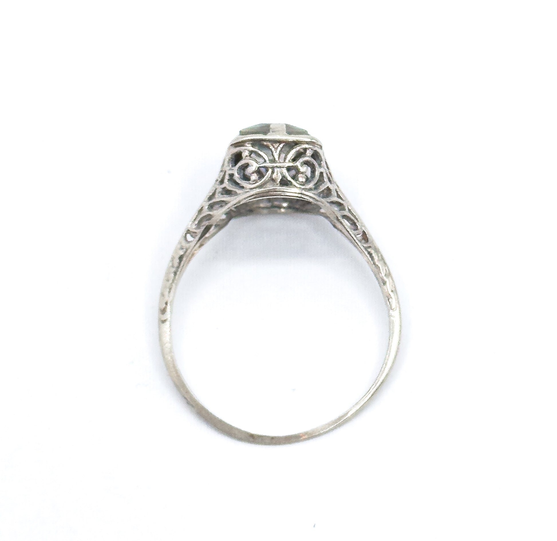 Art Deco Aquamarine Ring in 10K White Gold filigree