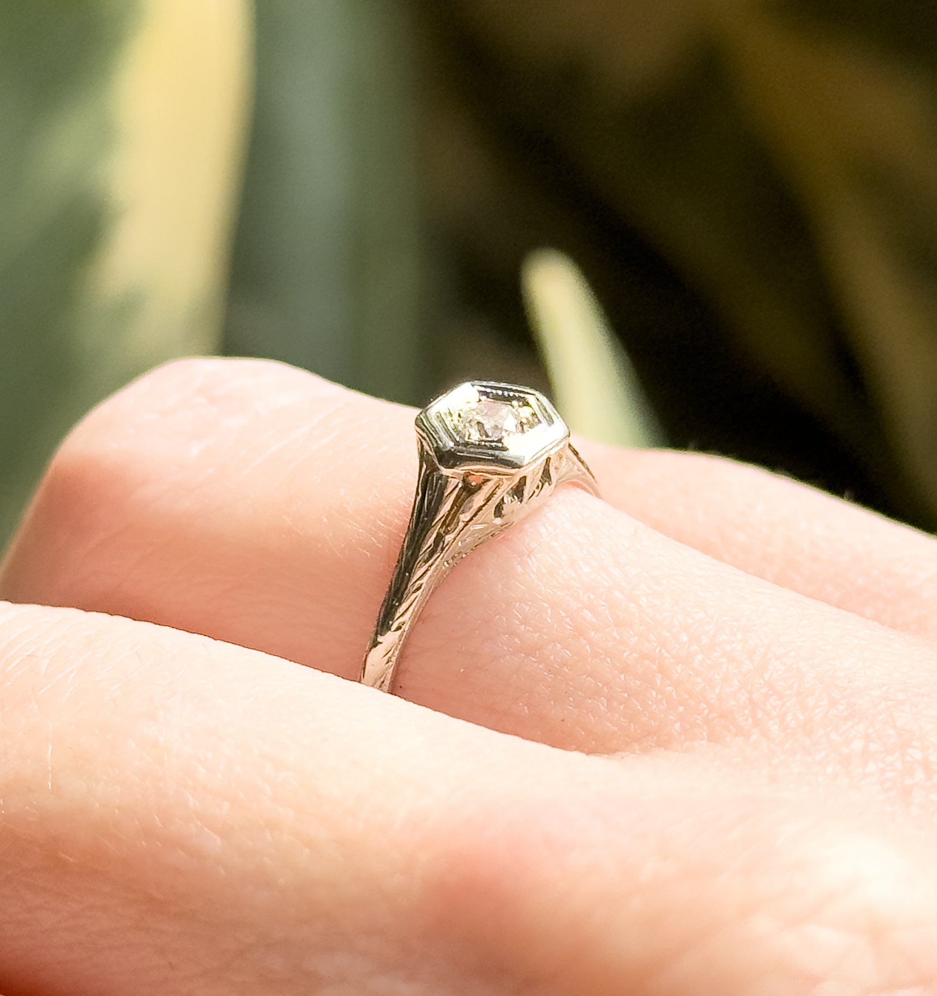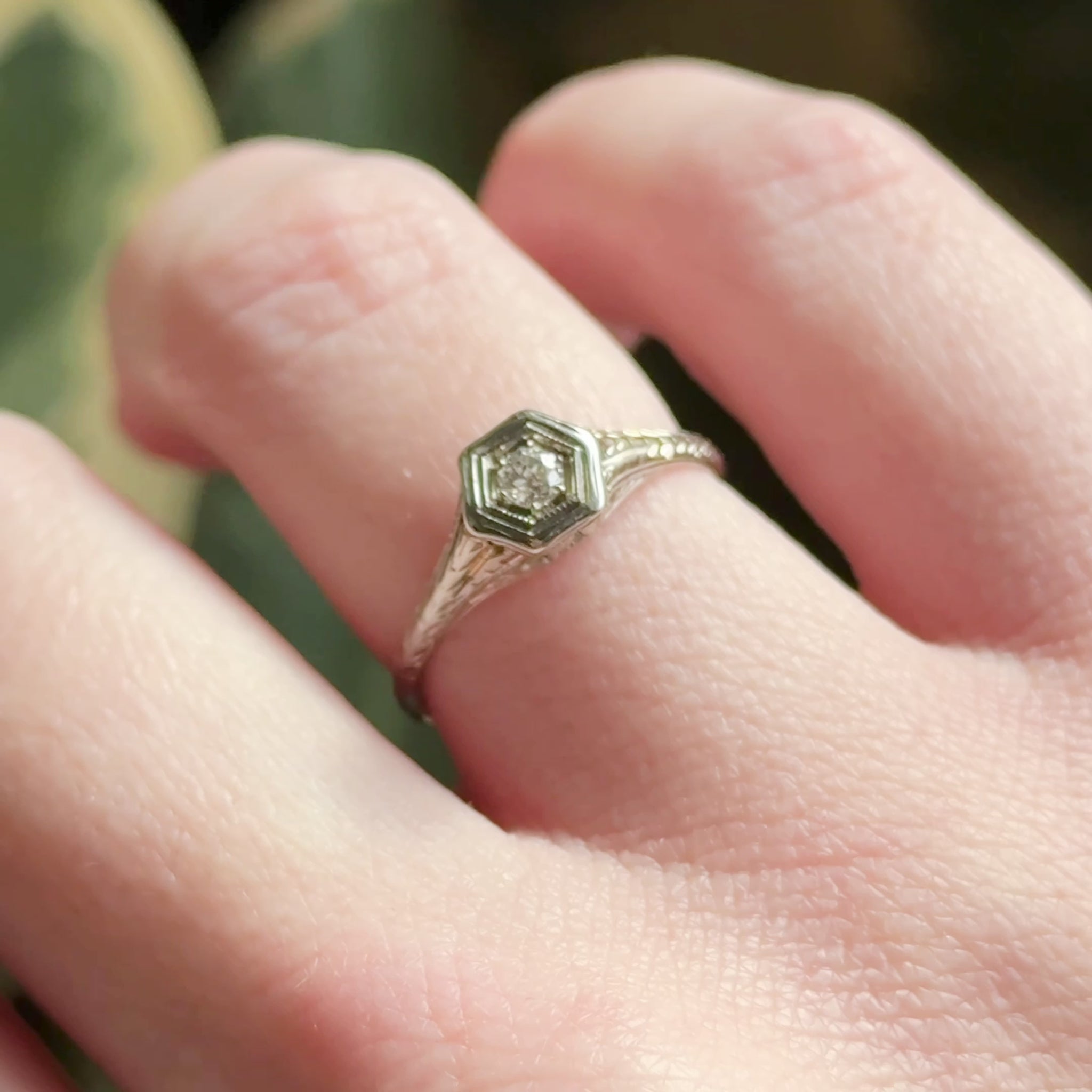 Art Deco Diamond Ring with Filigree Details Hexagon