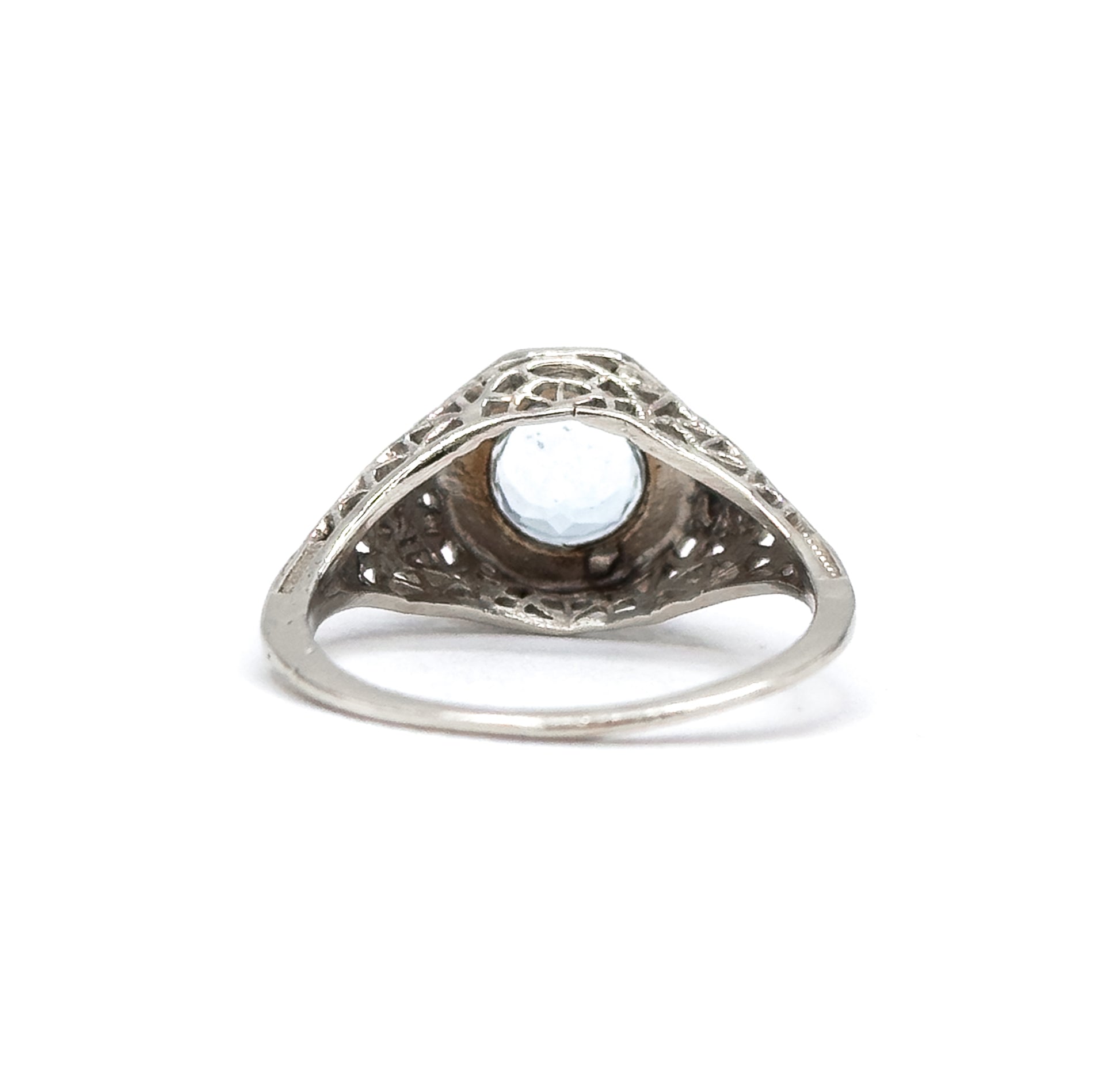 Art Deco Filigree Aquamarine Ring in 14K White Gold - As found
