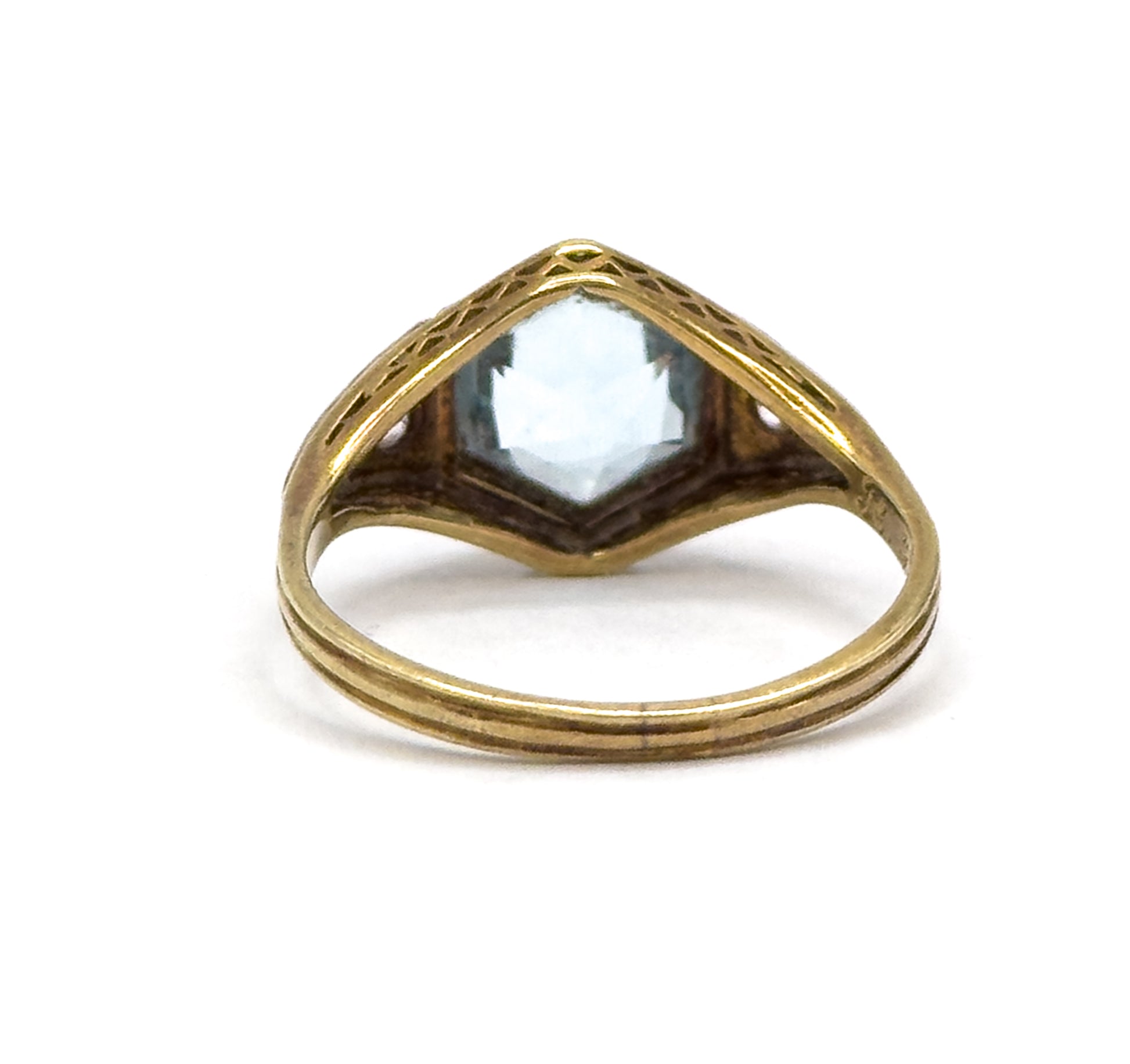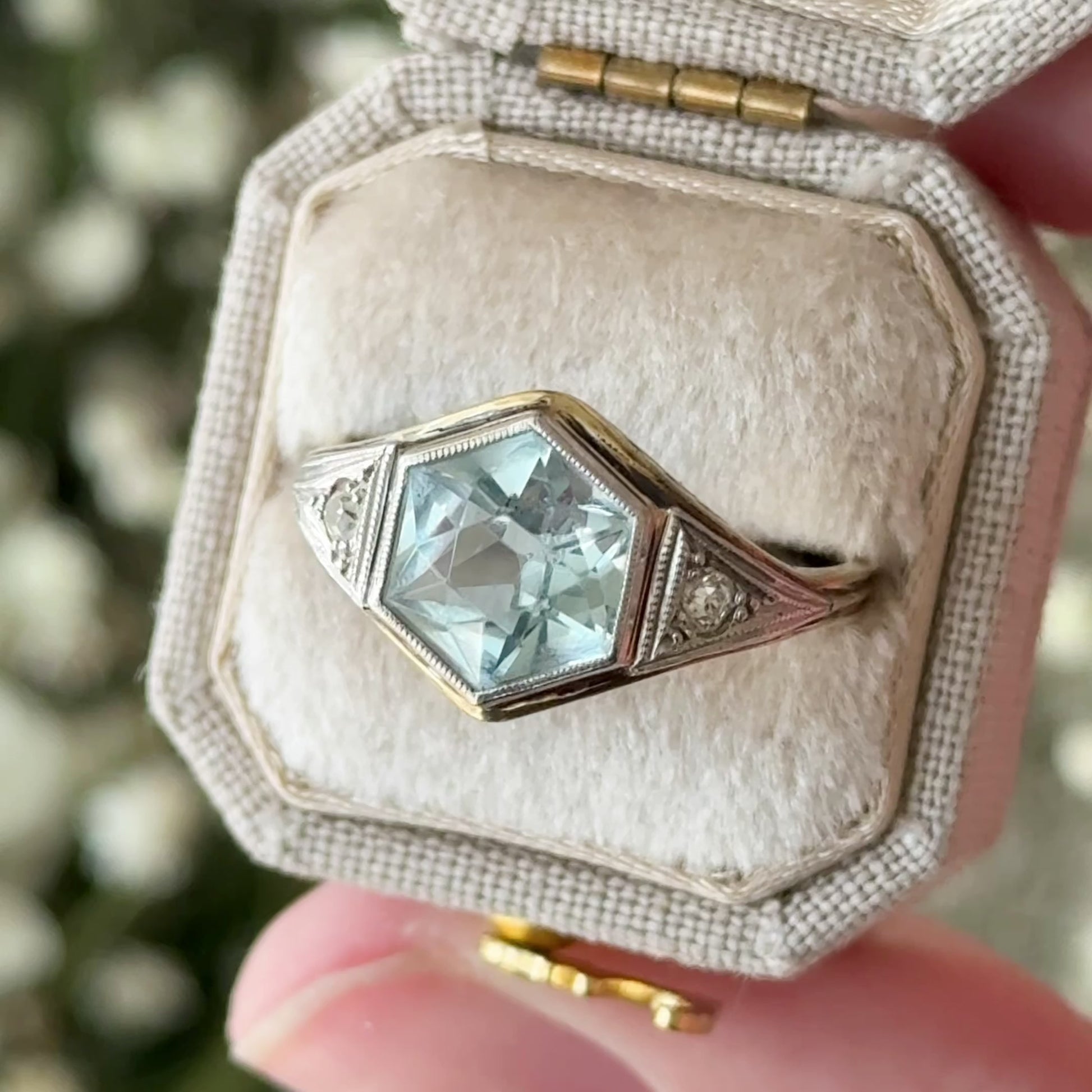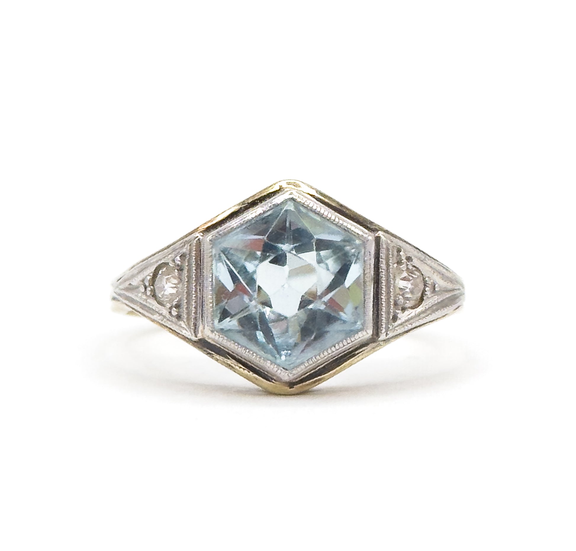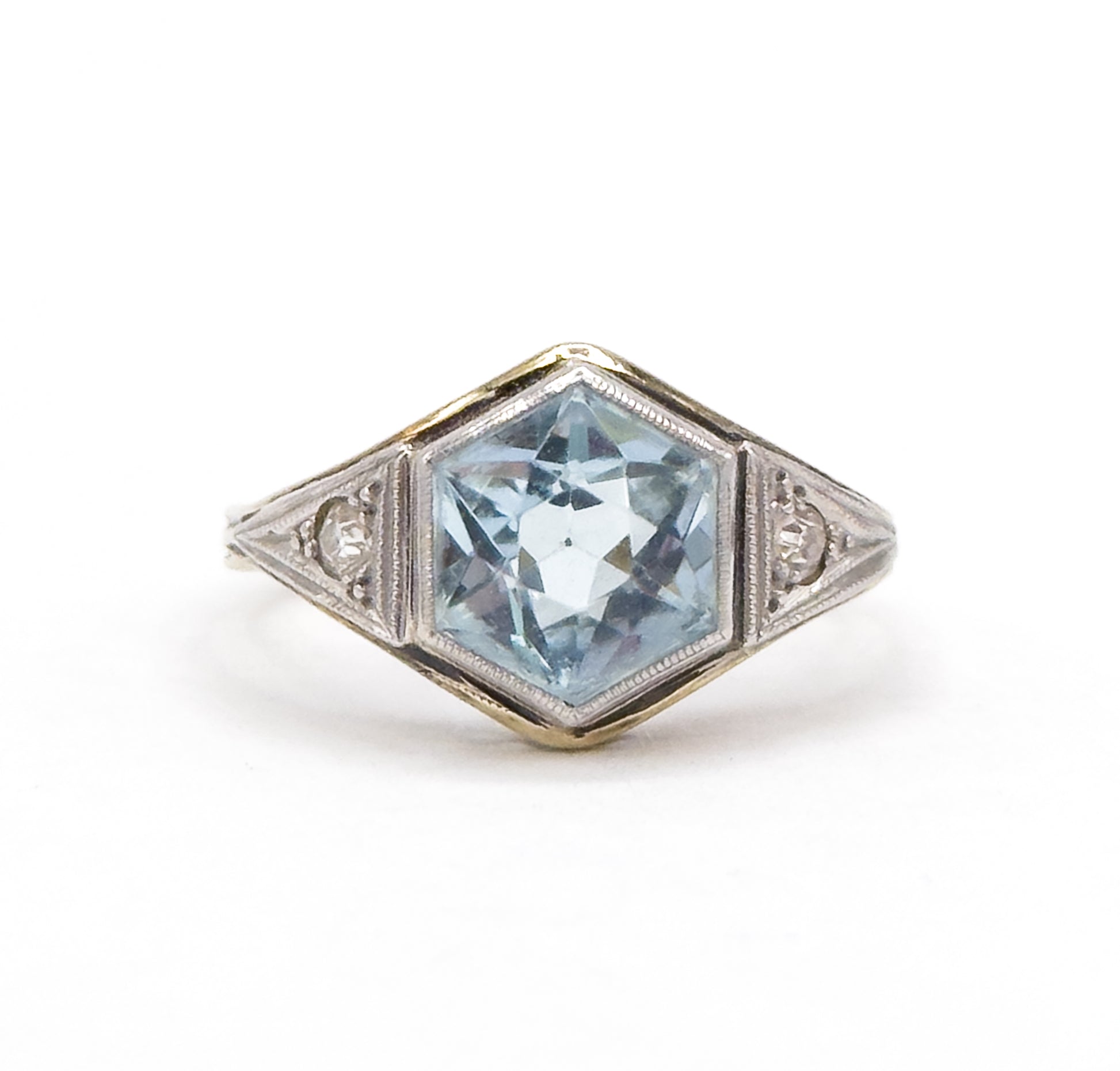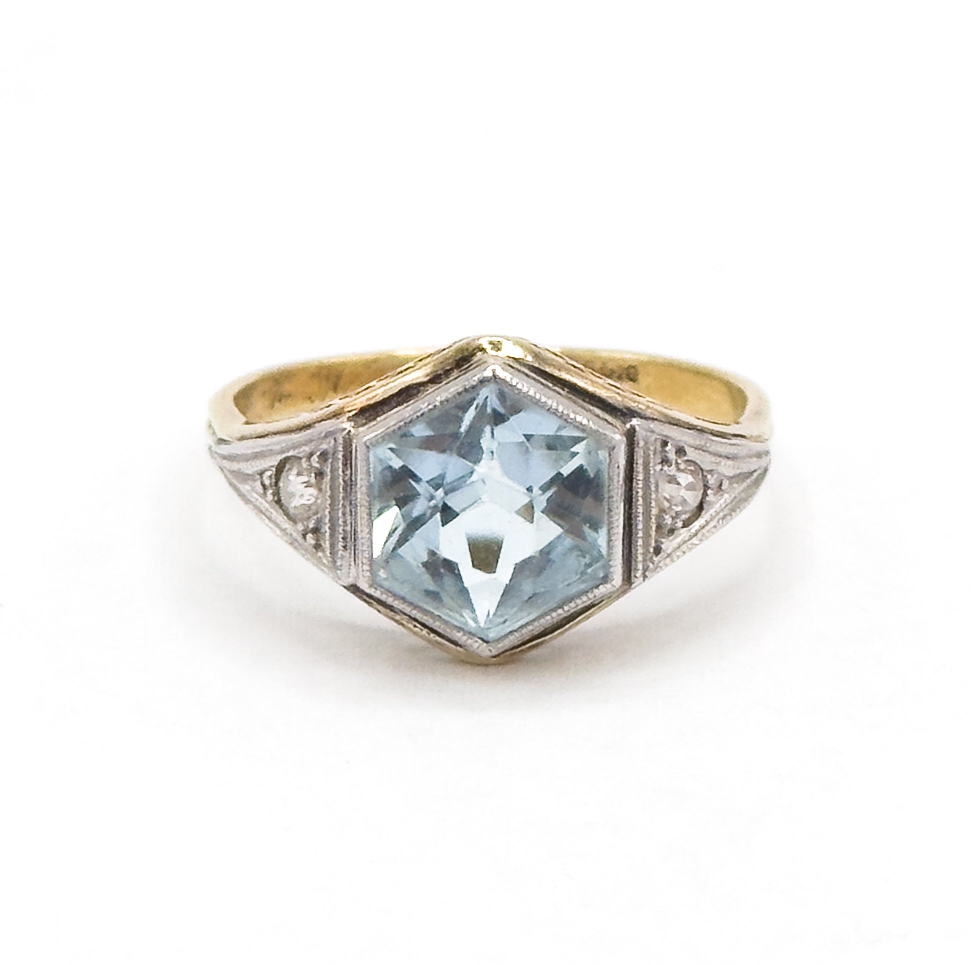 Art Deco Hexagonal Aquamarine Ring in Gold & Platinum