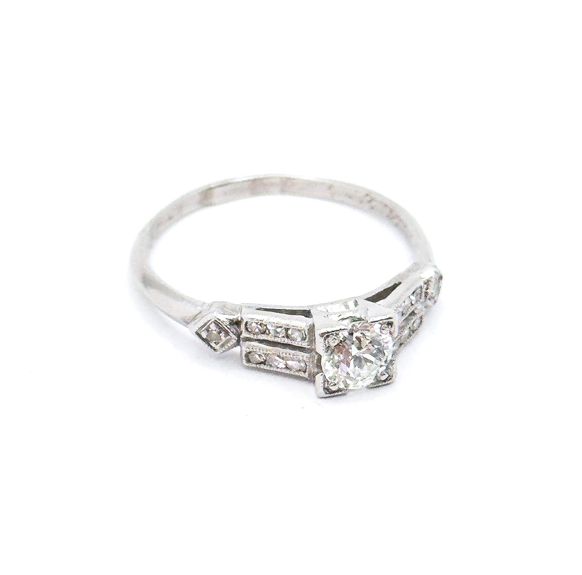 • Center Stone: Old European Cut Diamond, ~0.40ct, F color, VS1 clarity