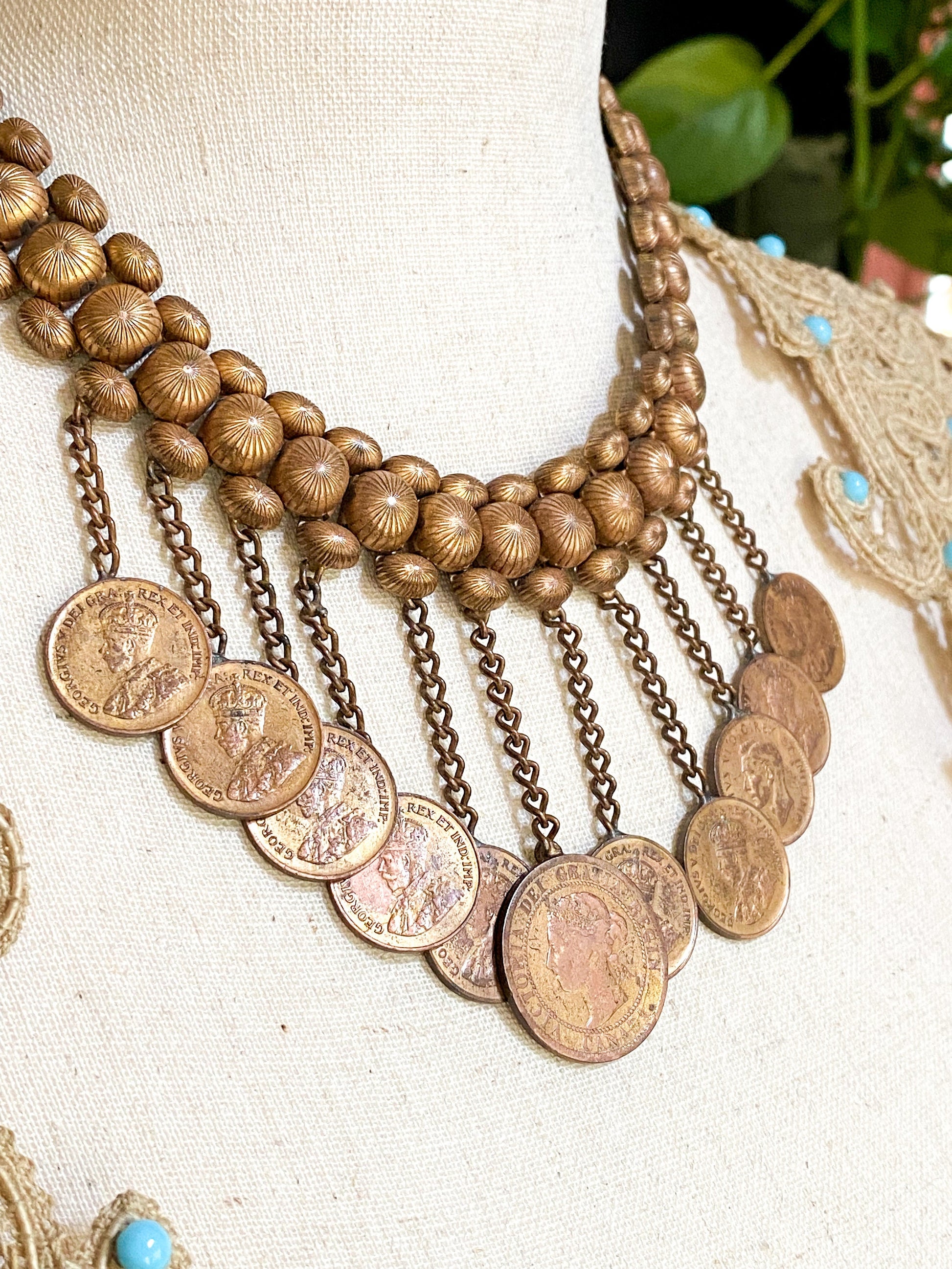 Vintage Handmade Coin Necklace Mixed Metals