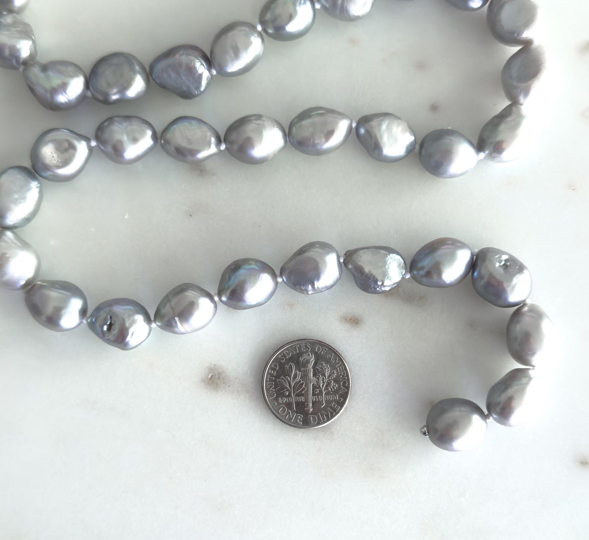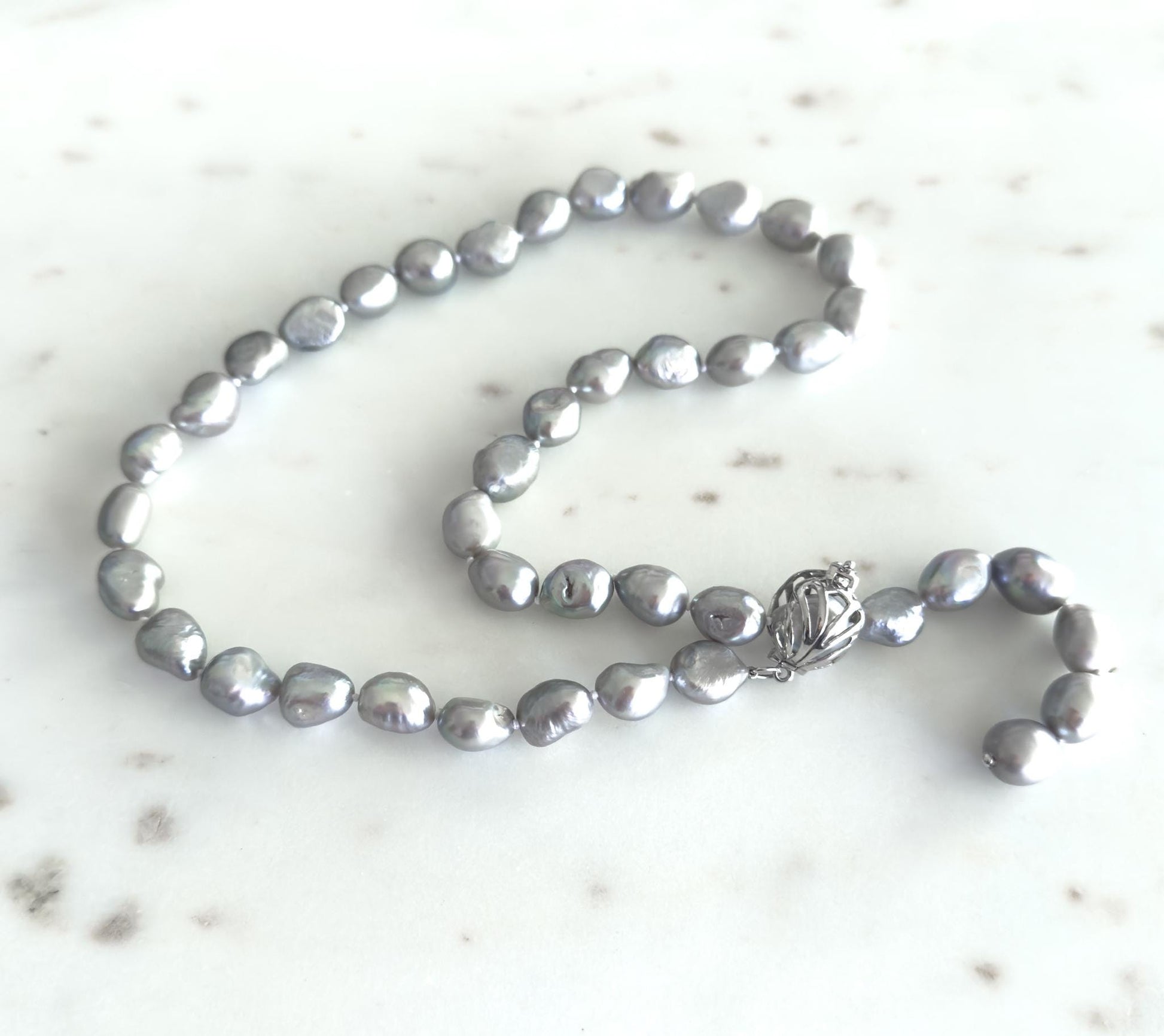 Beautiful Grey Pearl Necklace Baroque Freshwater Pearl Strand w Sterling Clasp