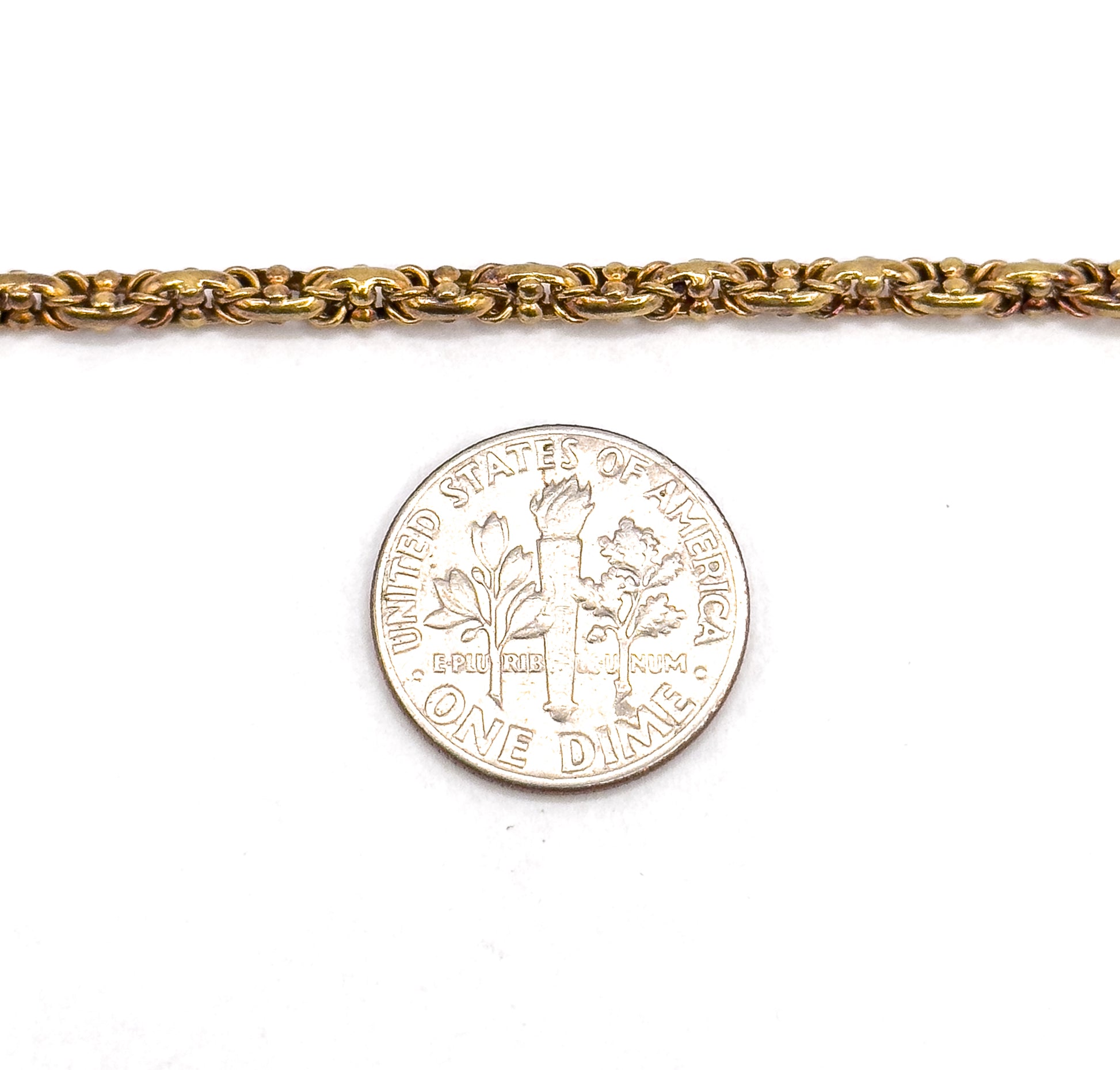 This piece is in very nice, well preserved, sturdy and wearable condition. Due to the rare nature of this chain, and its future preservation, we do not recommend hanging oversized/heavy pendants or sleeping in this chain. A beautiful and highly collectable heirloom quality piece!
