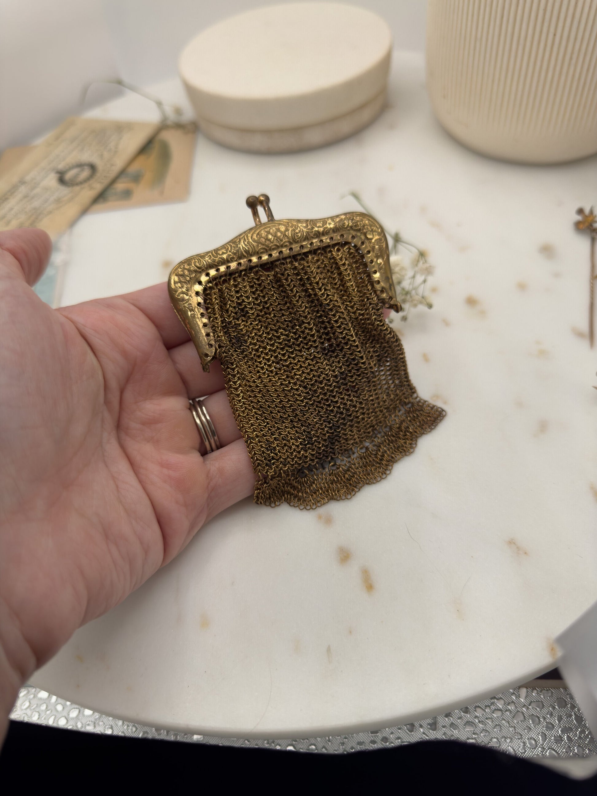 Cute Vintage Coin Purse Chainmail Purse with Ring Mesh Purse Gold Tone