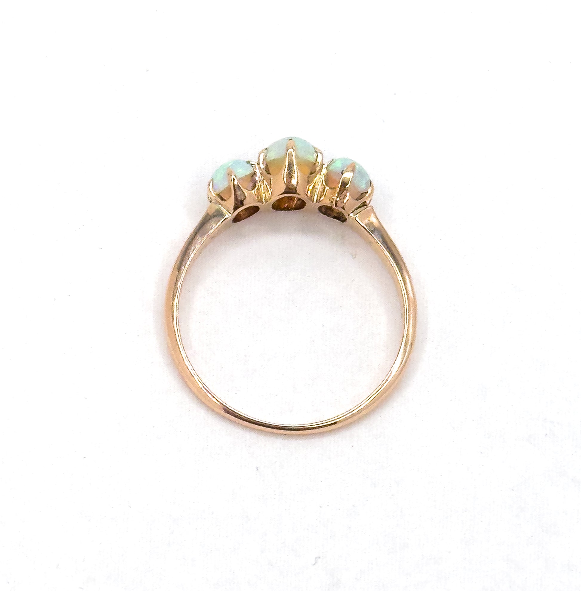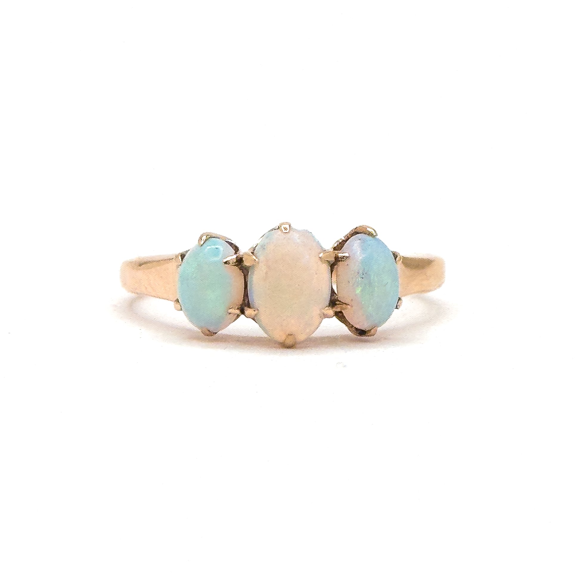 Edwardian Opal Cabochon Three Stone Ring in 10K Gold