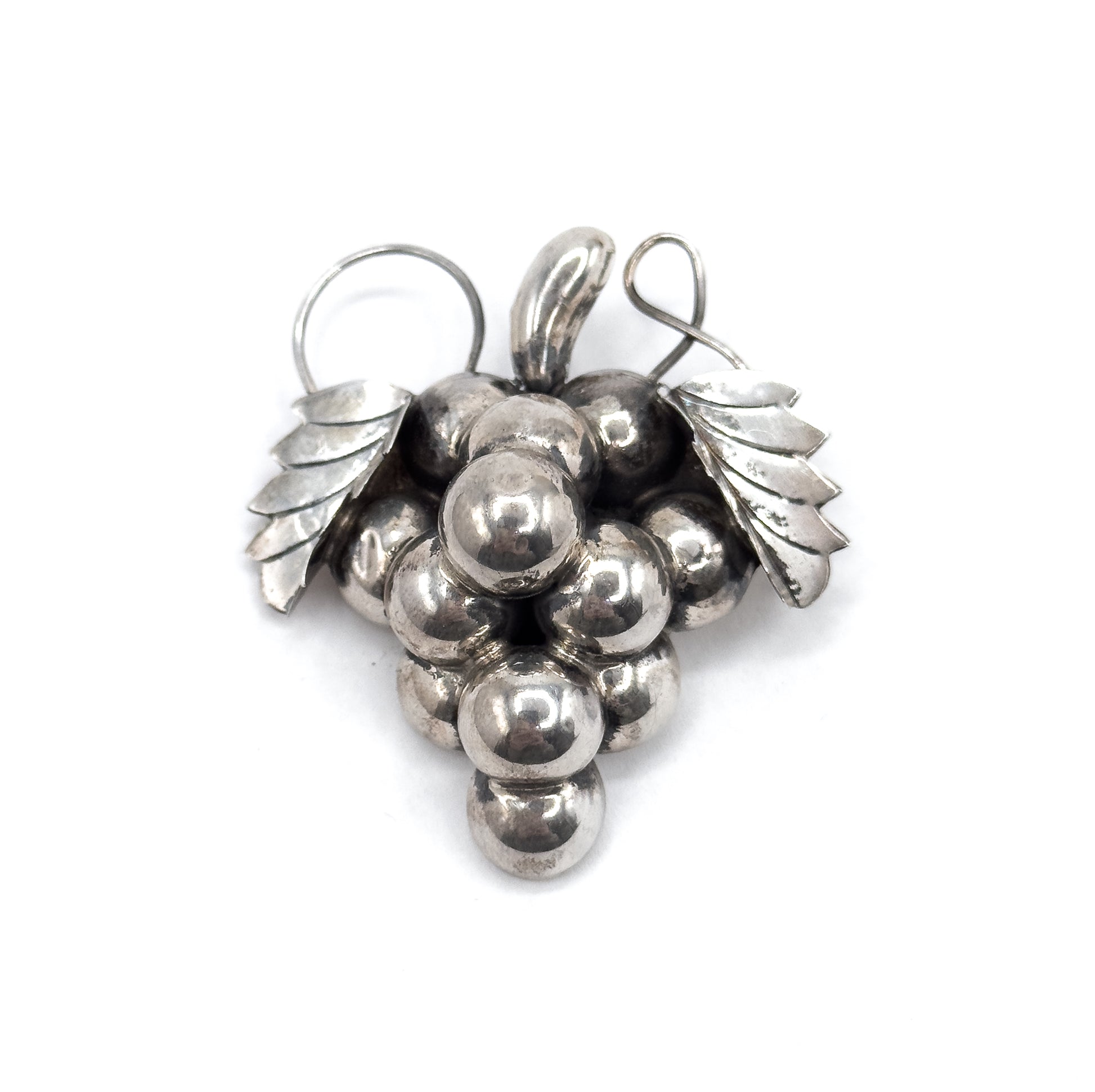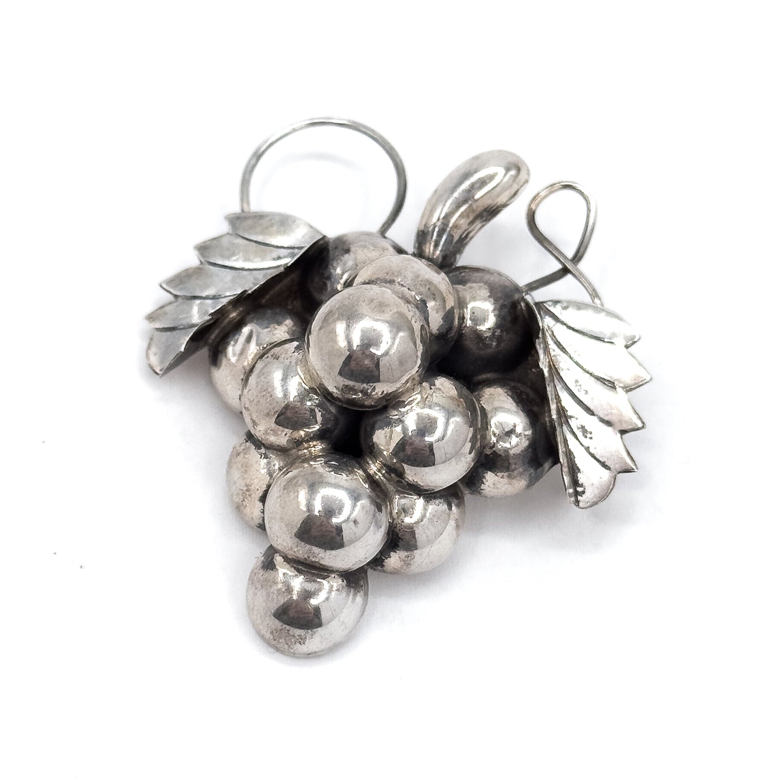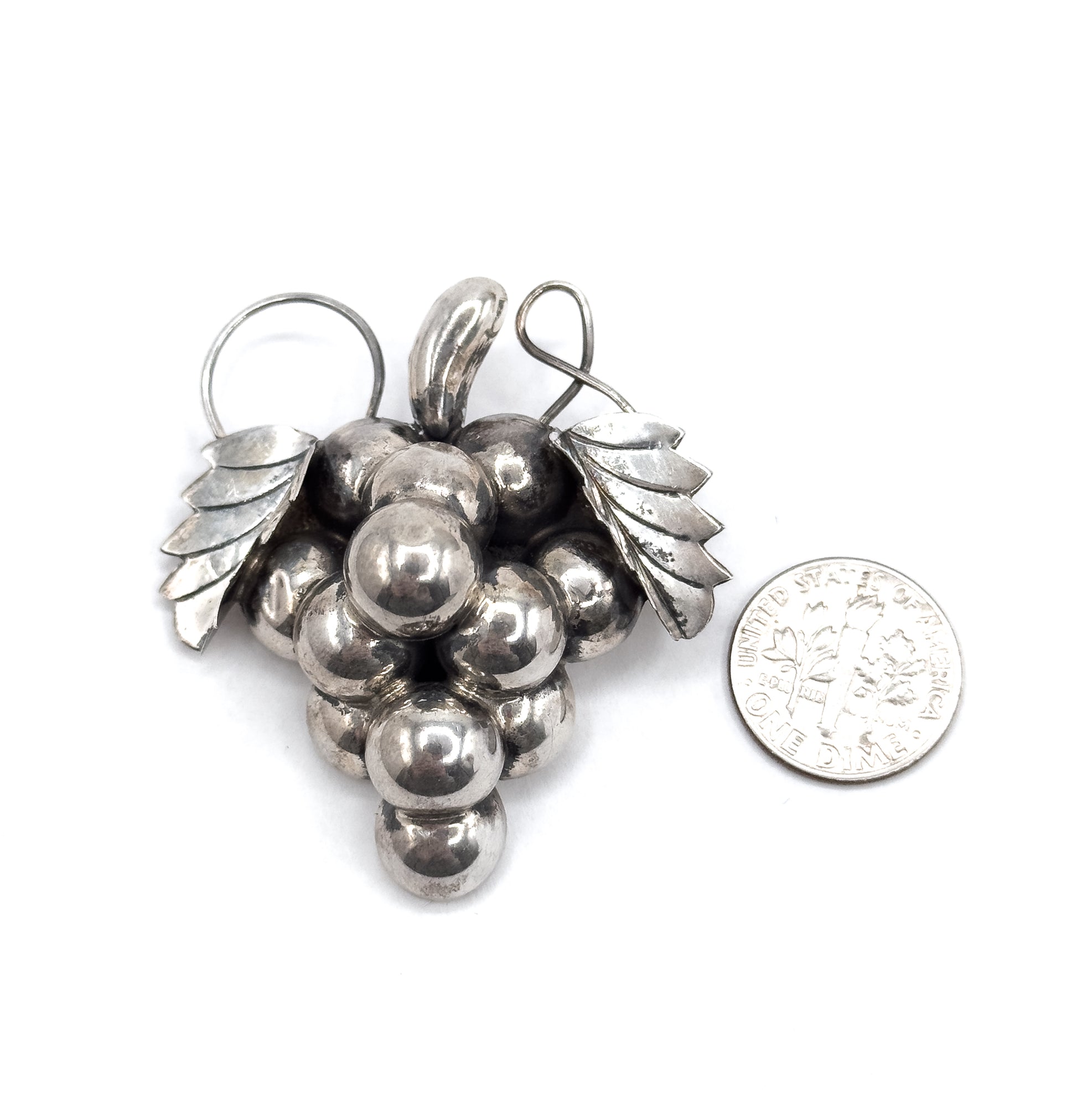 Mid-Century Iguala Mexico Grape Cluster Brooch in Silver