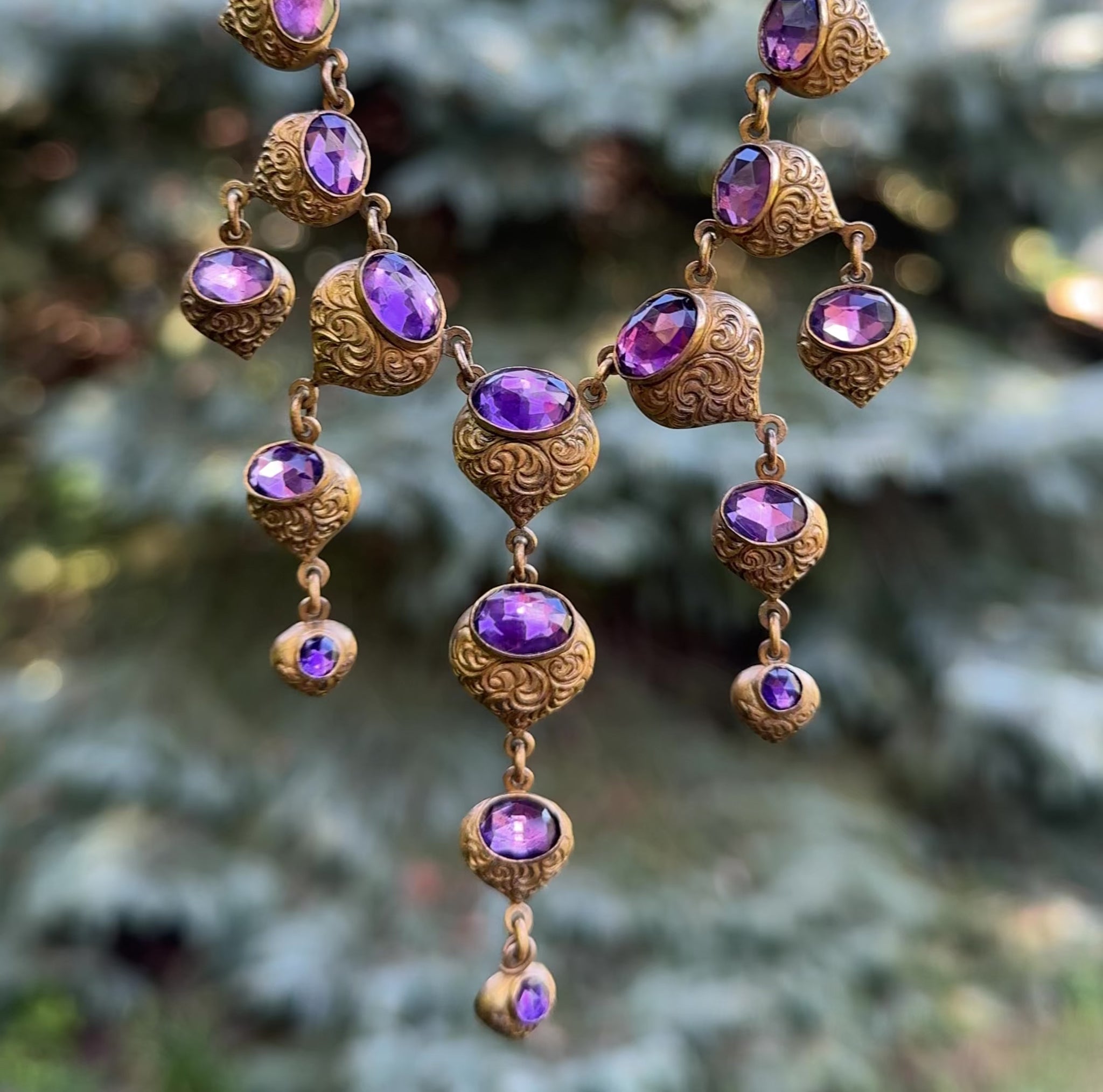 Rare Antique Foiled Purple Paste Art Nouveau Festoon Necklace