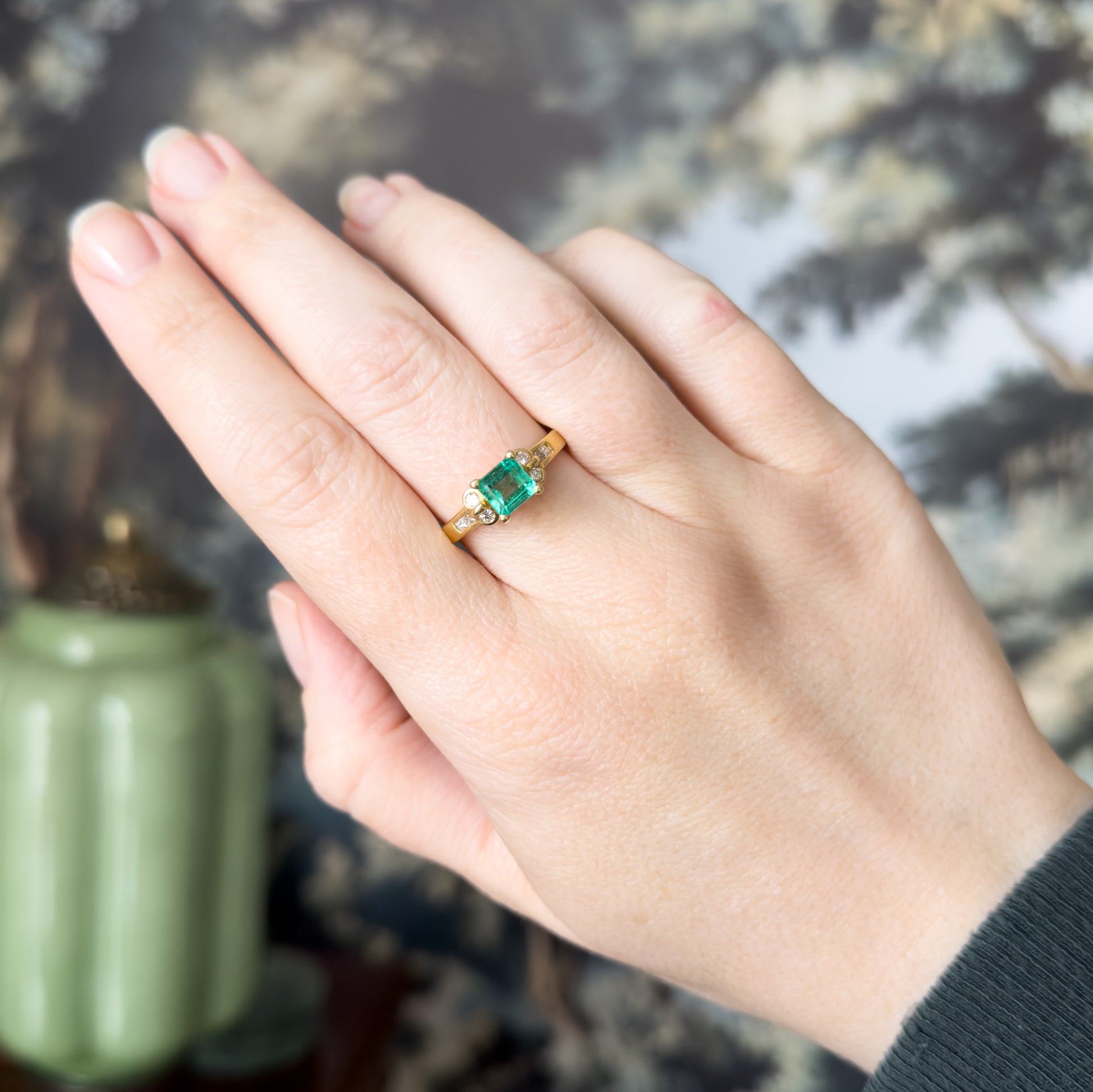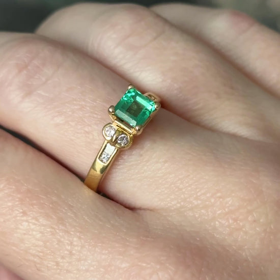 Emerald and Diamond Ring in 18K Gold