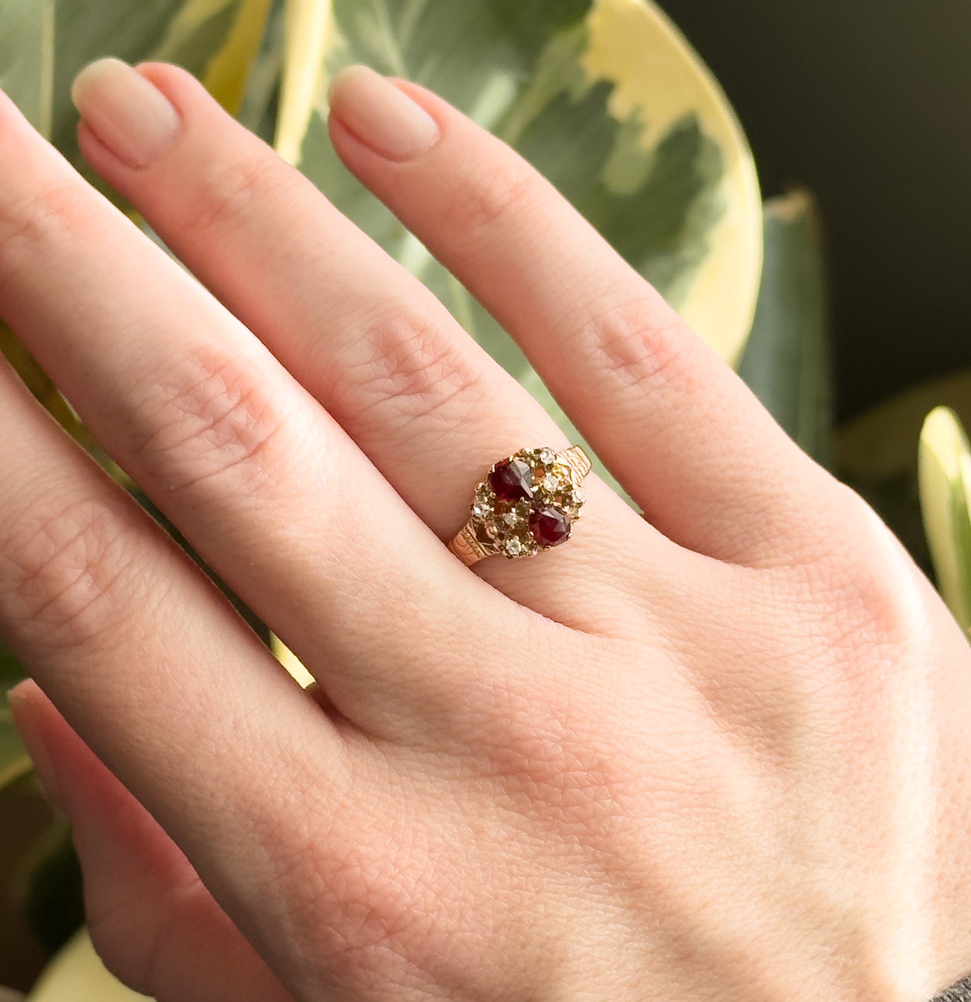 Victorian Garnet & Rose Cut Diamond Ring in 10K Rose Gold