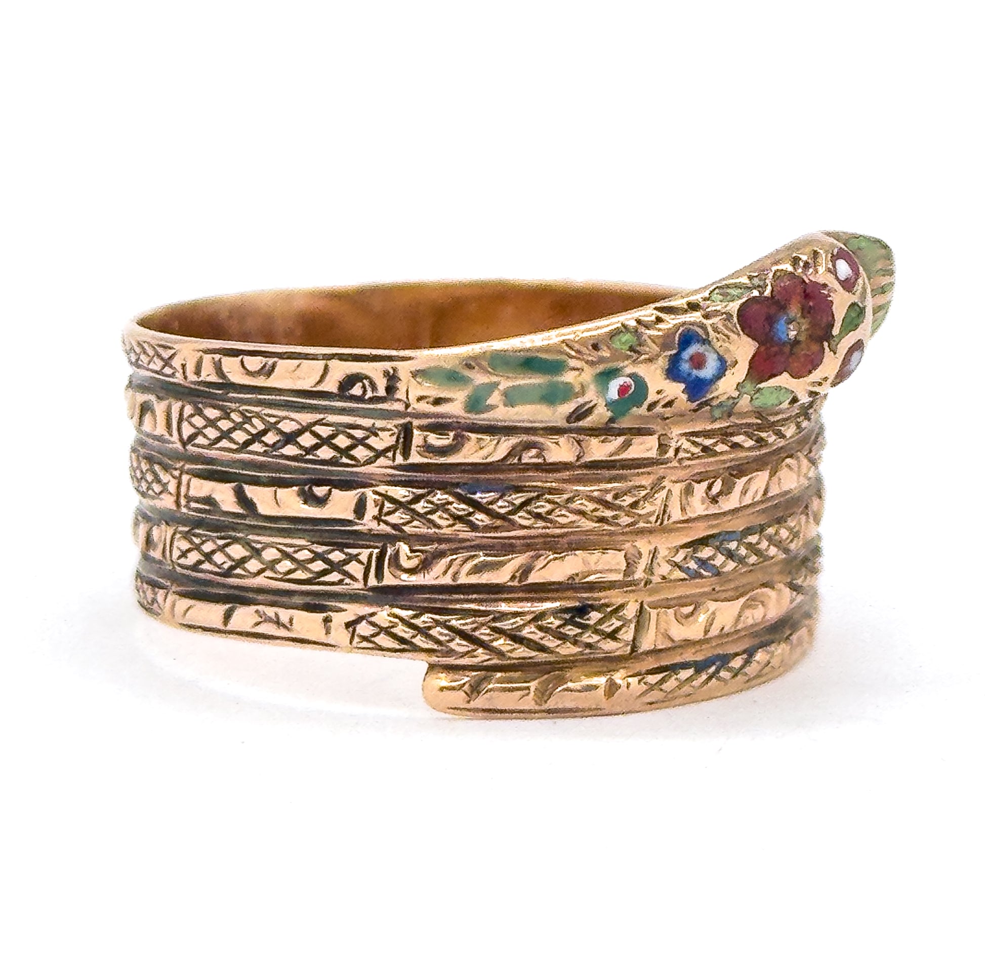 Victorian Wide Band Snake Ring with Enamel Details