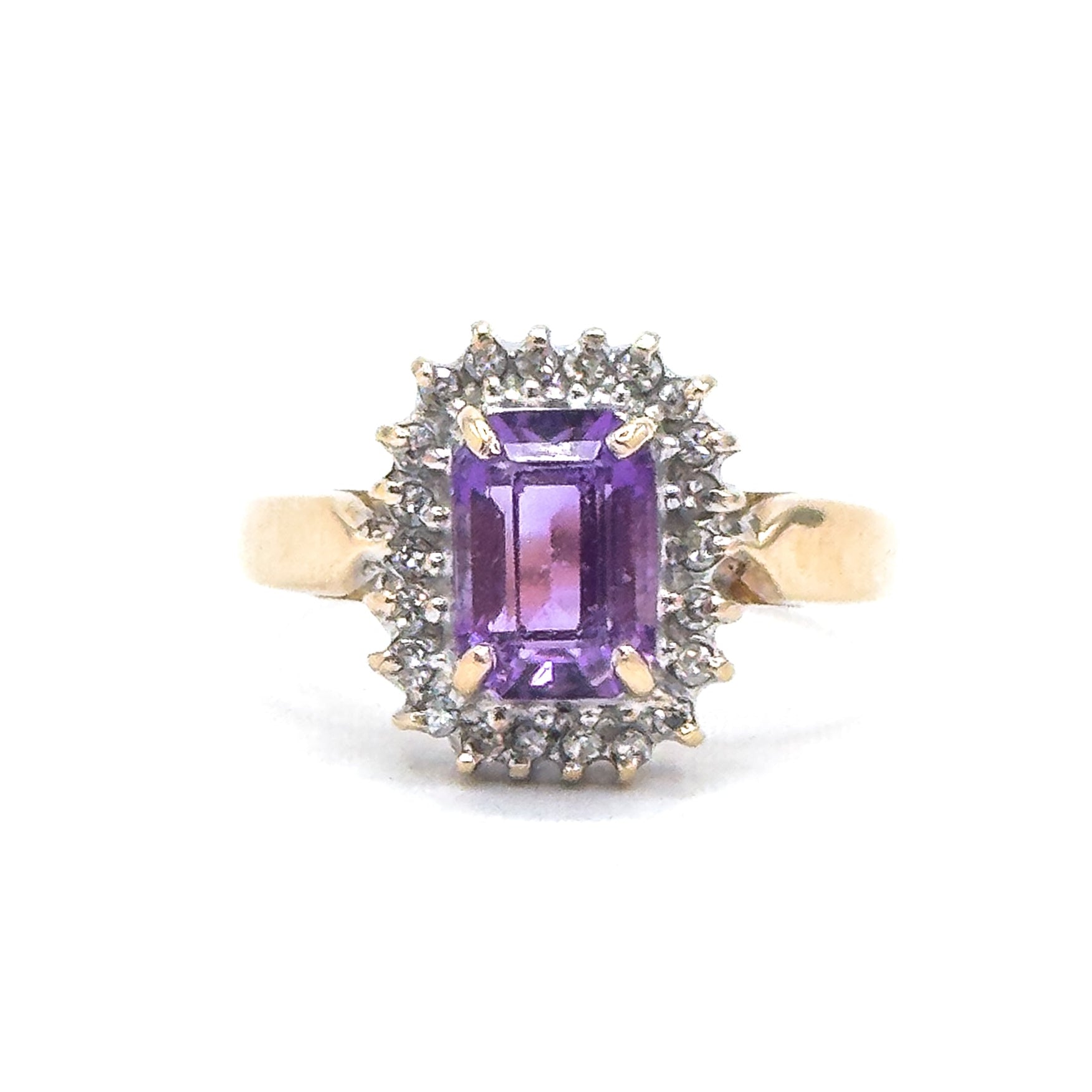 Vintage Amethyst Ring with Diamond Halo in 10K gold
