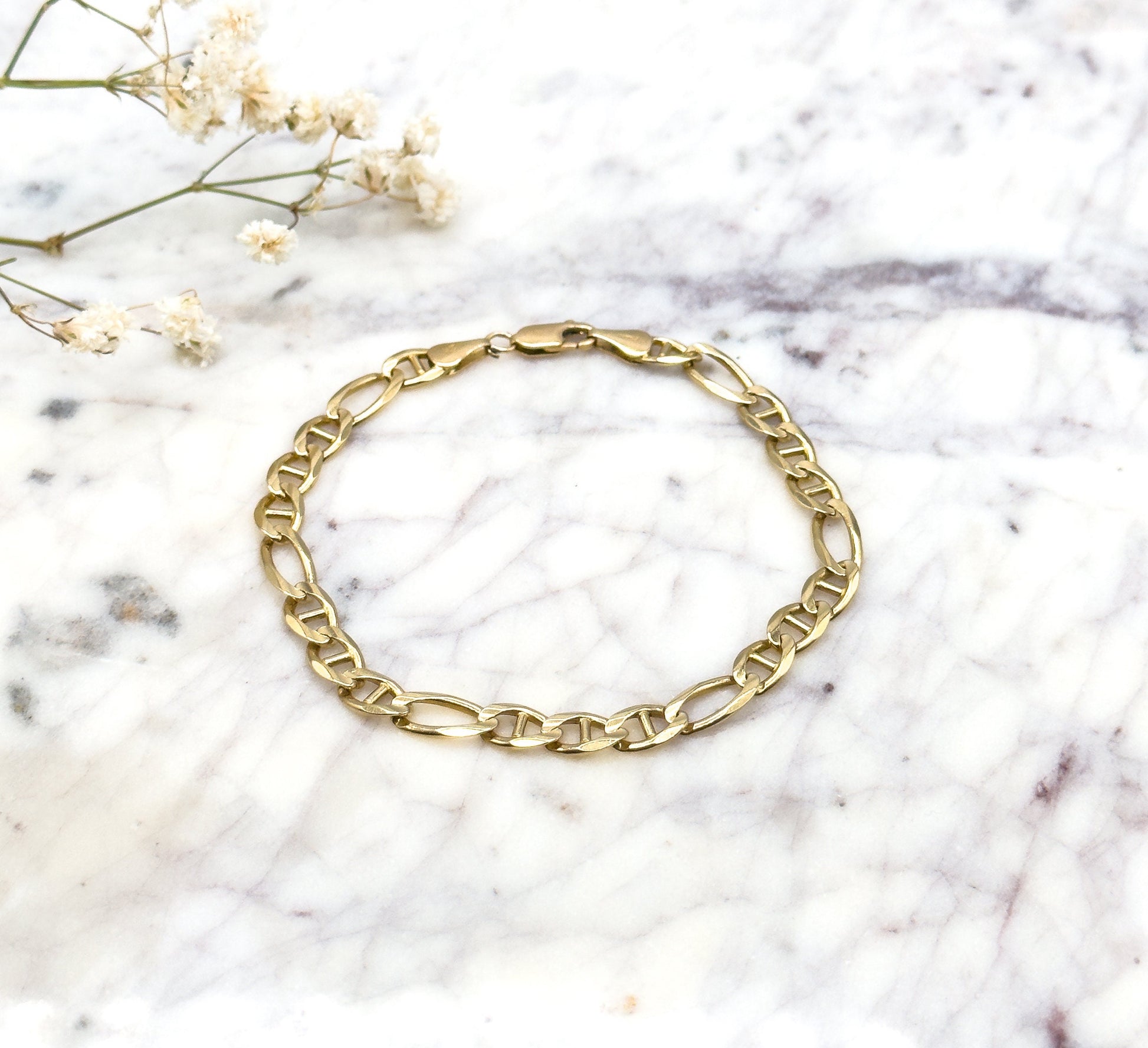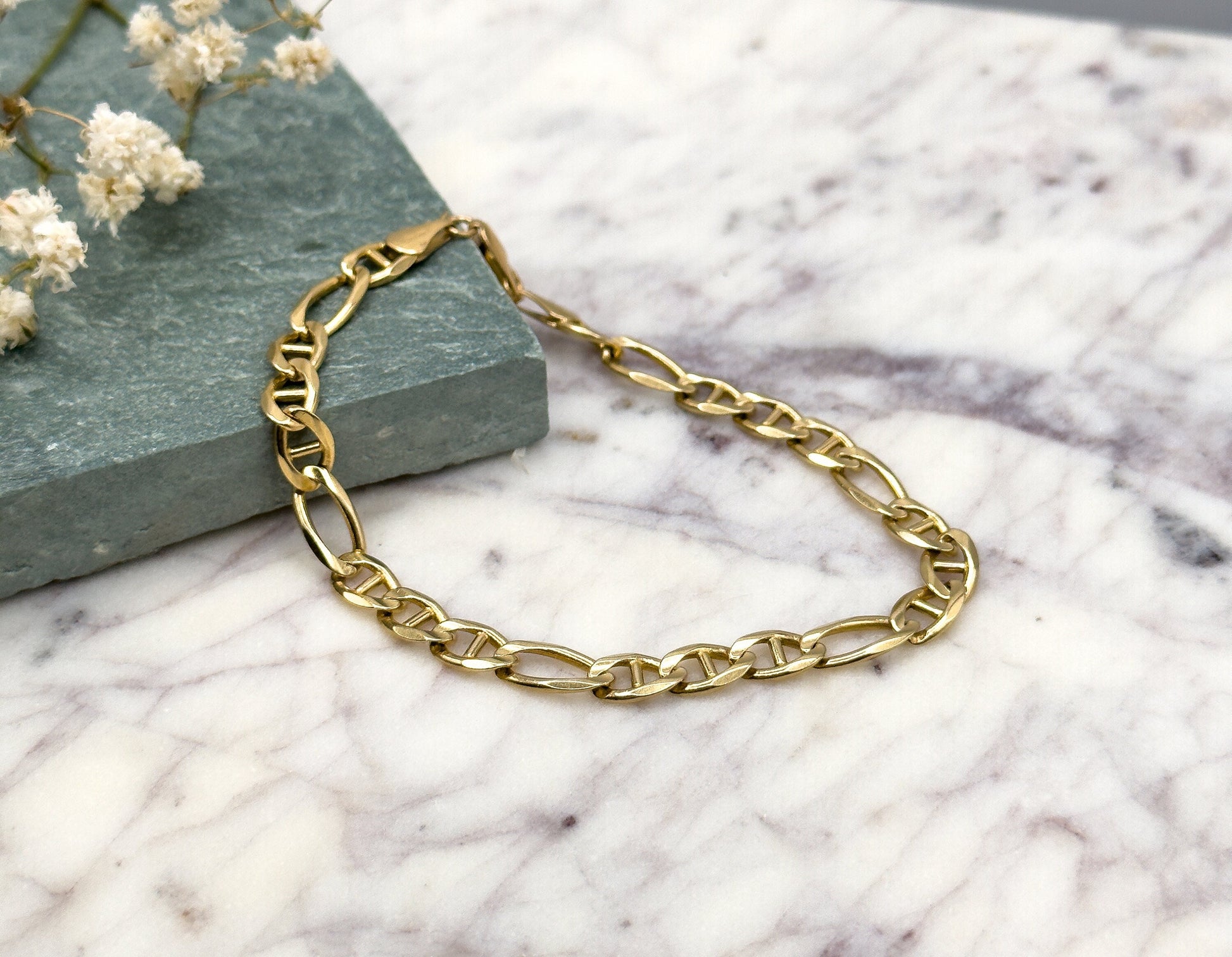 Vintage Figaro Chain Bracelet in 14K solid gold