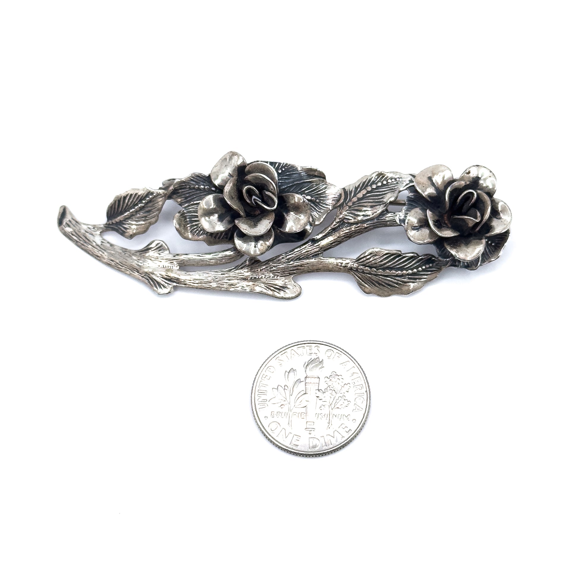 Vintage JewelArt Brand Roses on Branch Pin in Silver
