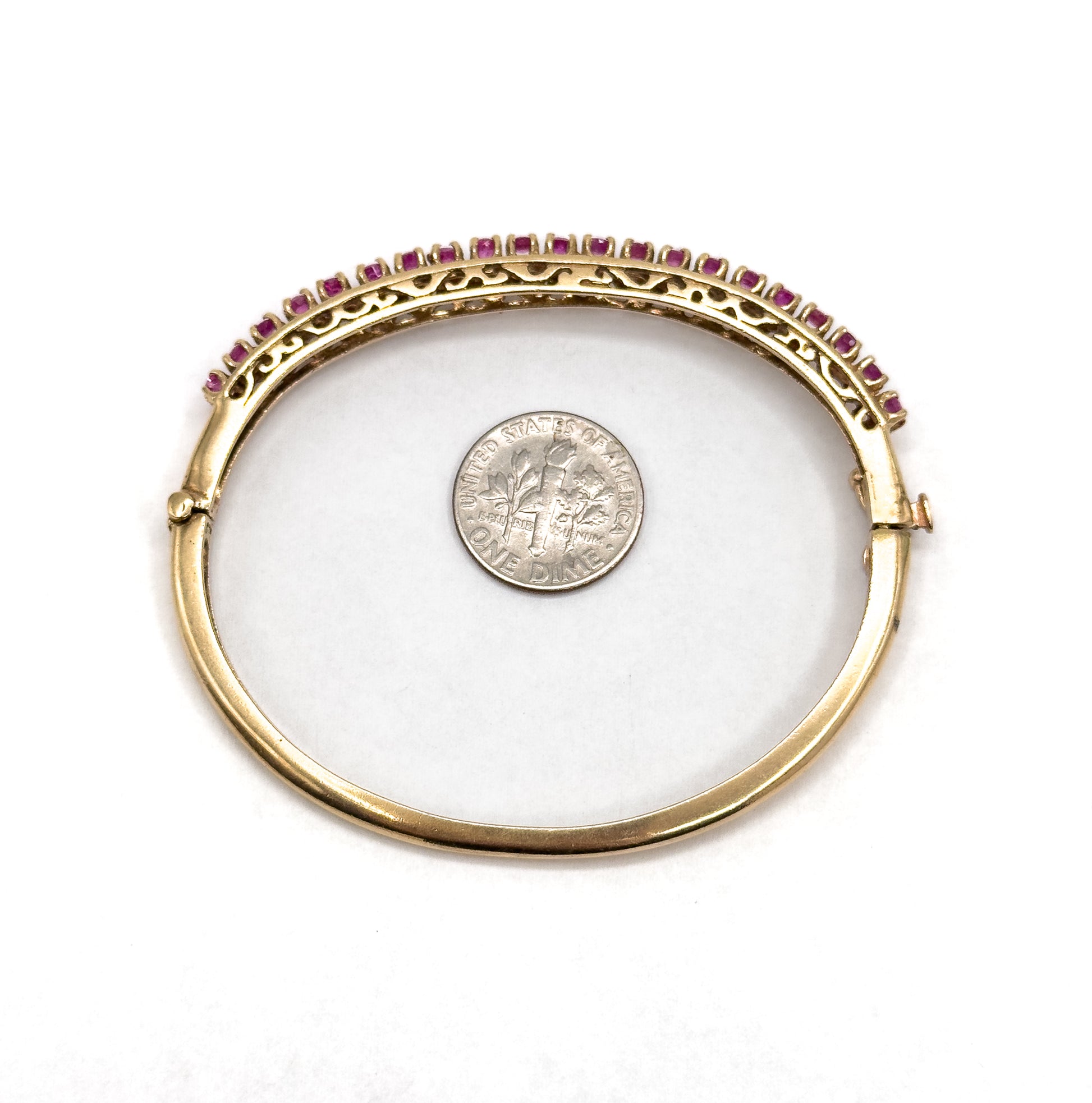 Vintage MidCentury Ruby Line Hinged Bangle Bracelet in 14K Gold