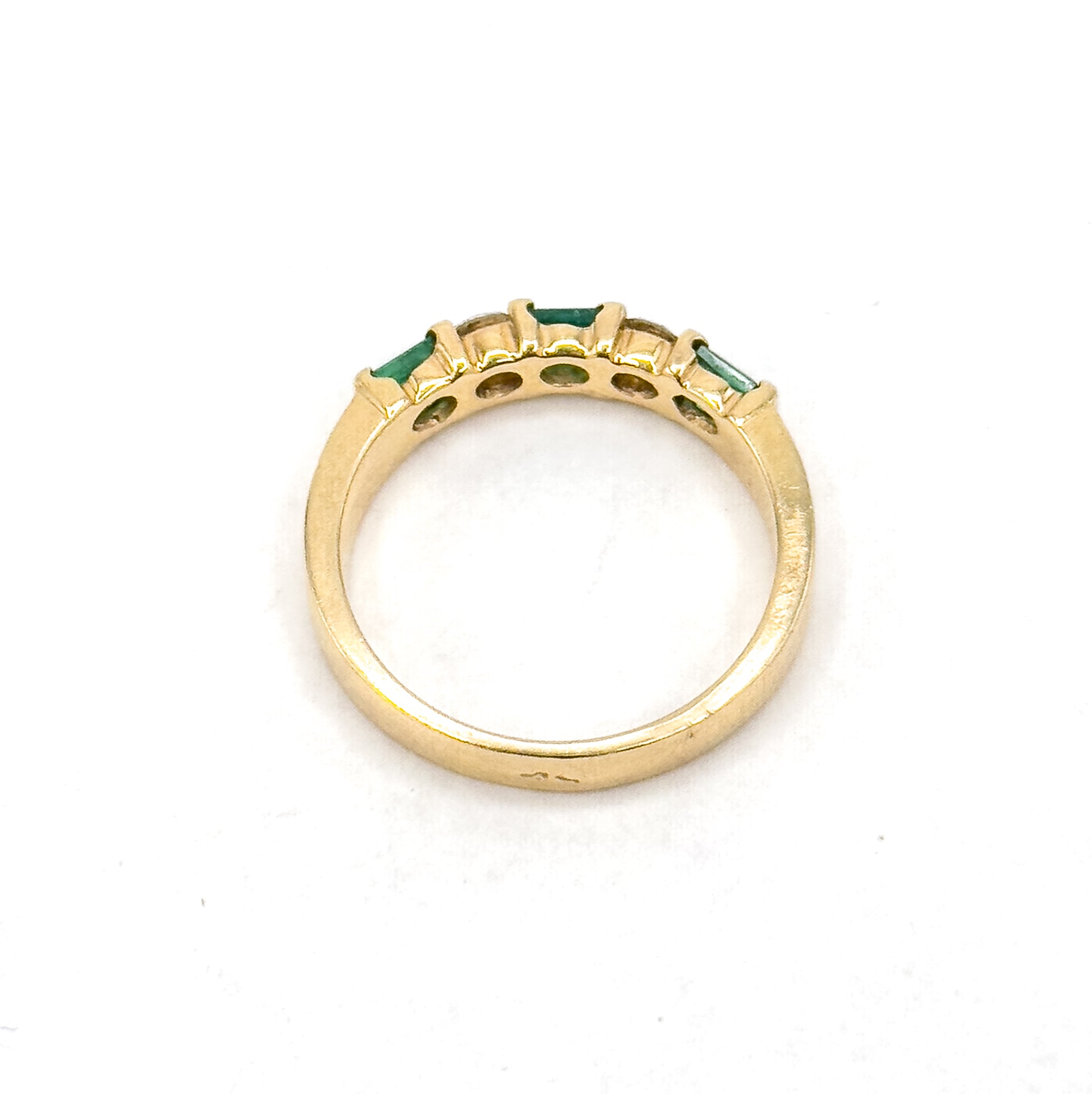 Vintage Princess Cut Emerald & Diamond Band Ring in 14K Yellow Gold