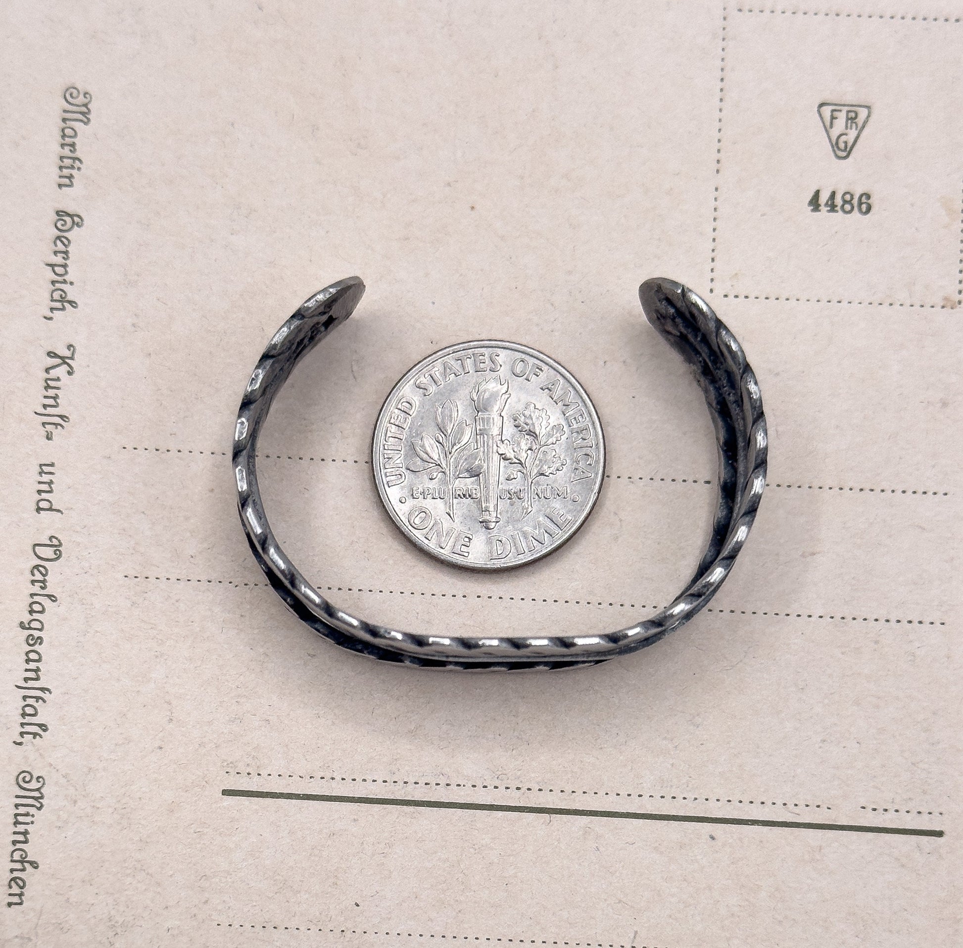 CONDITION This vintage bracelet is handmade and does have some wear and irregularities. There is oxidation and surface wear on the inside of the piece that could be cleaned by new owner if desired. All our antique and vintage jewelry is pre-loved and may show signs of age-related wear. We provide multiple high-resolution photos to help describe our finds. They are an important part of the description. As part of our commitment to your positive experience, in this section, we list any condition issues we see, however minor they may be. As always, feel free to reach out with questions at any time.